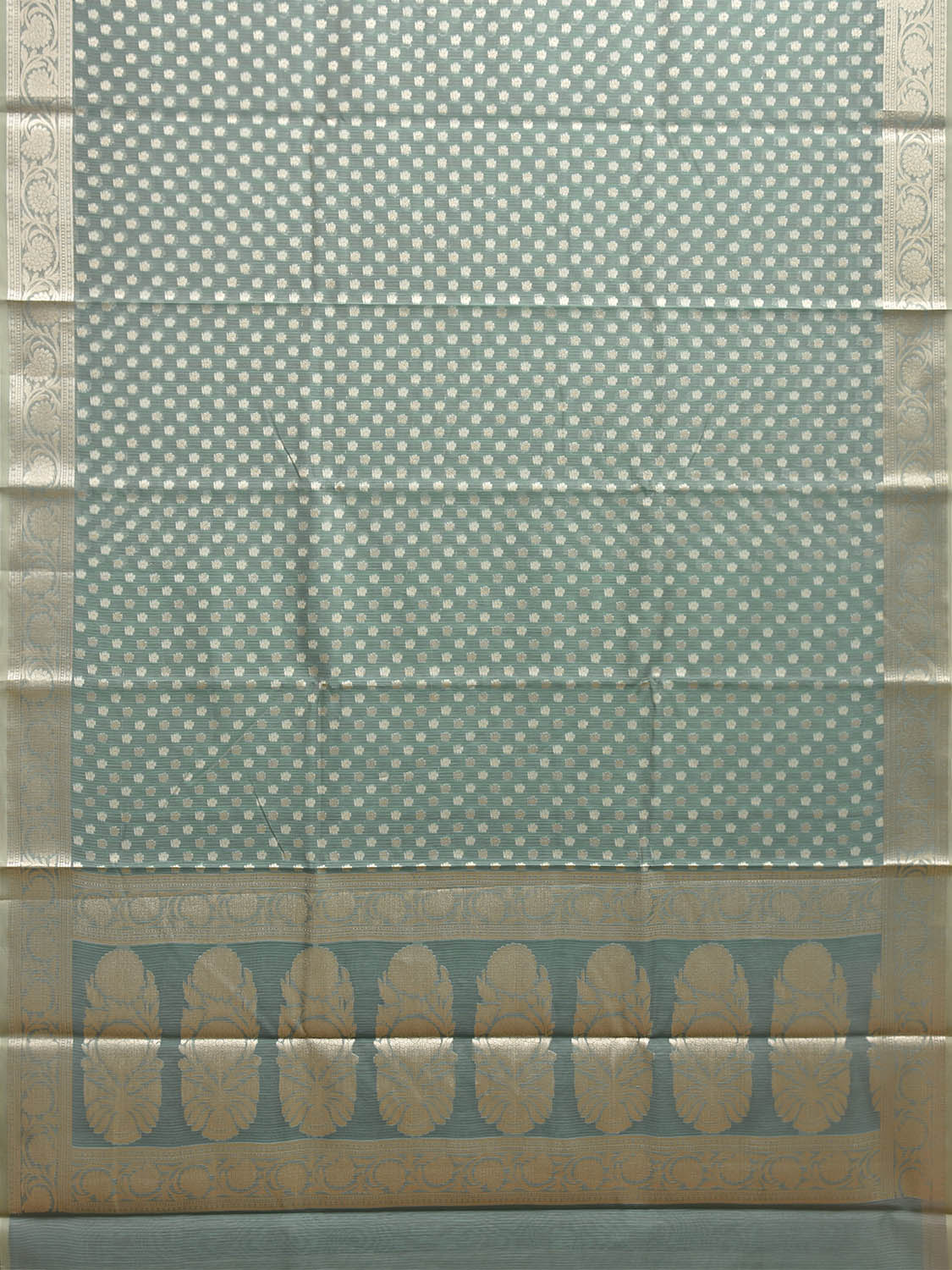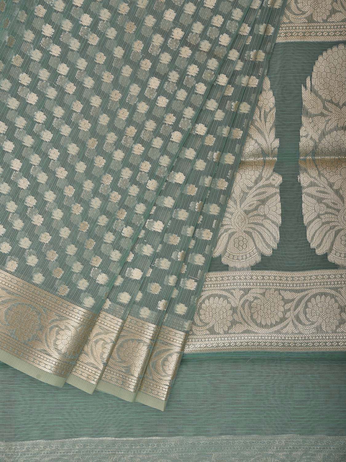 Sea Green Dhakai Jamdani Cotton Viscose Saree with All Over Small Buta and Pallu Design dj0323