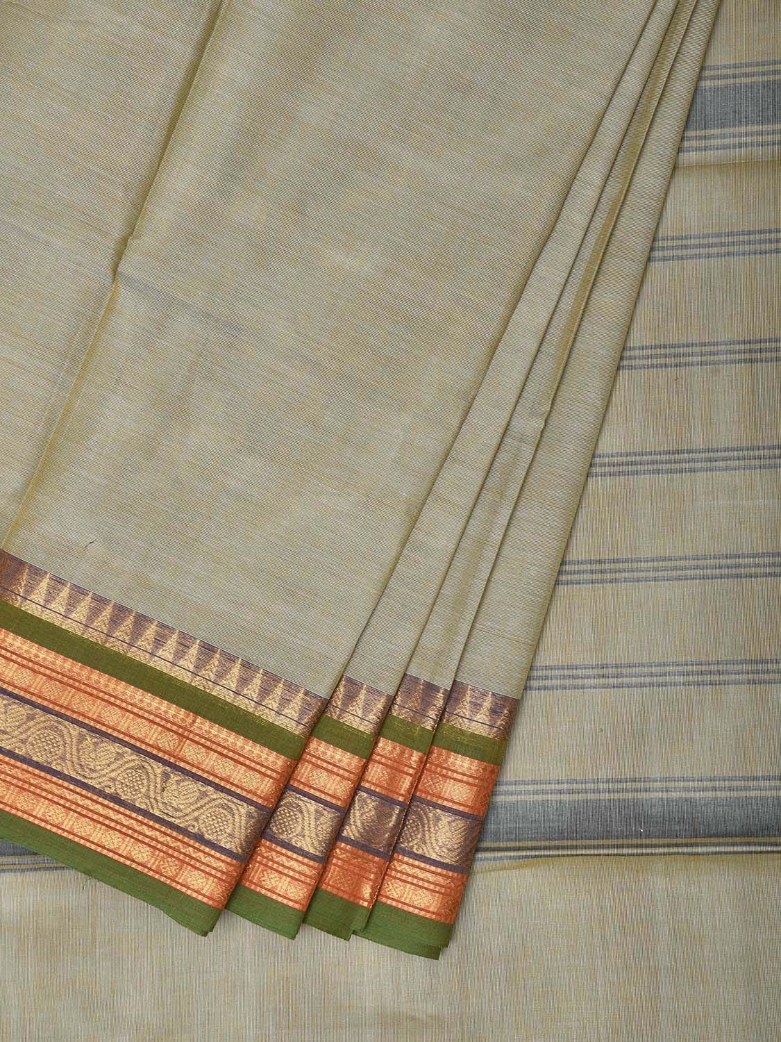 Sea Green Kanchipuram Cotton Plain Saree with Strips Pallu Design. Traditional Simple South Indian Attire Saree for any Casual Occasions. As it’s a cotton saree we advice gentle handwash separately for fabric care.