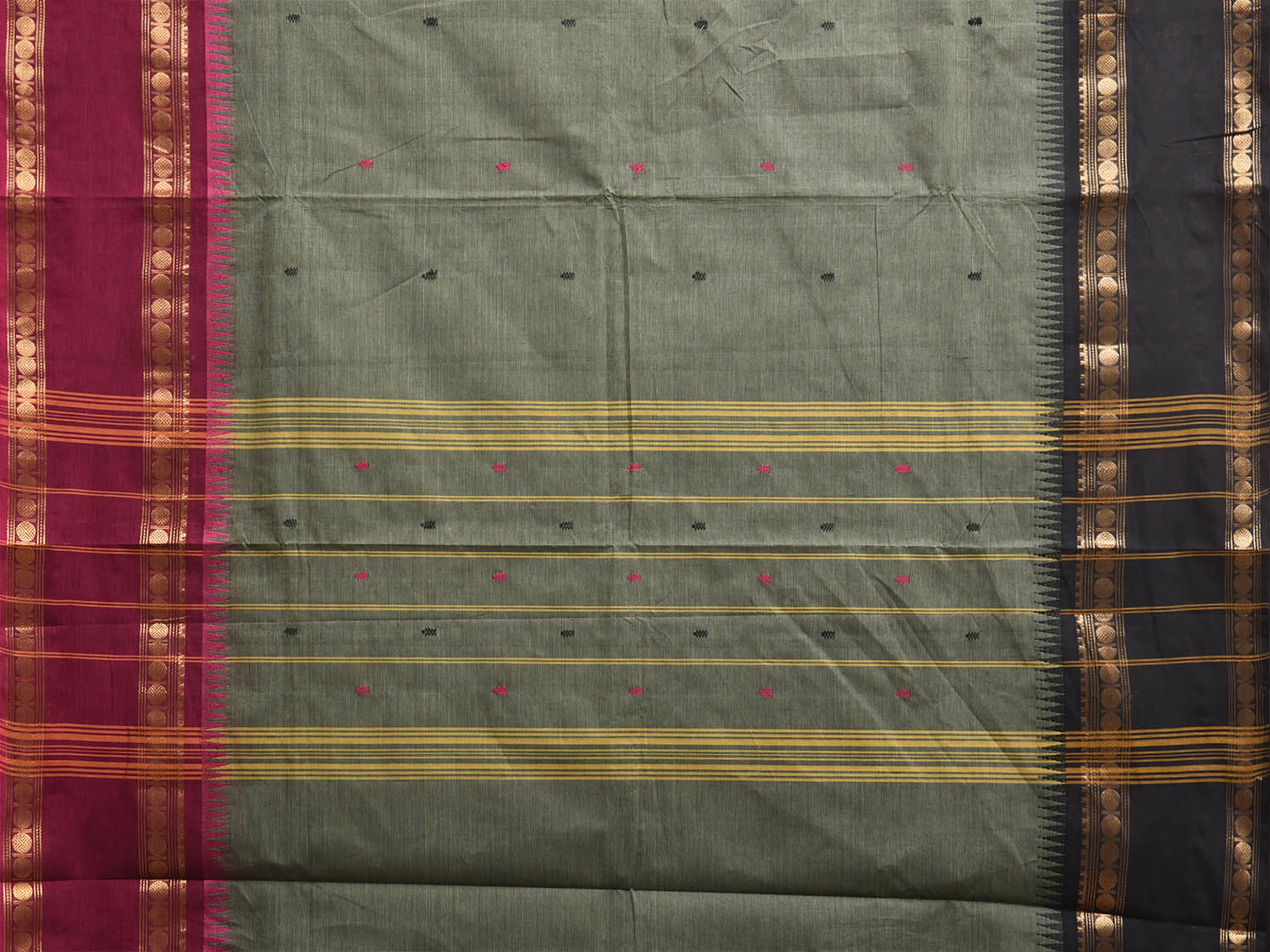 Sea Green Kanchipuram Cotton Saree with Ganga-Jamuna Border Design. Traditional Simple South Indian Attire Saree for any Casual Occasions. As it’s a cotton saree we advice gentle handwash separately for fabric care. This saree has no blouse.