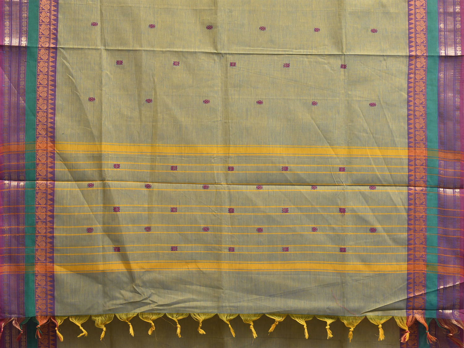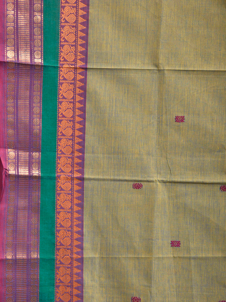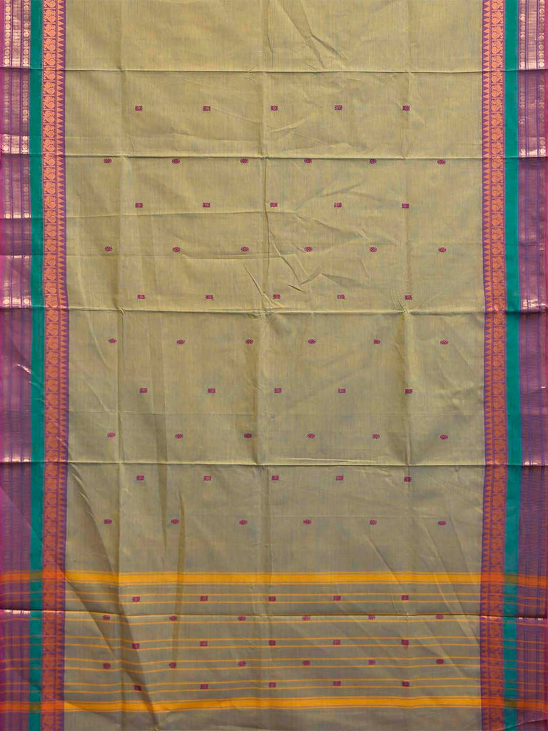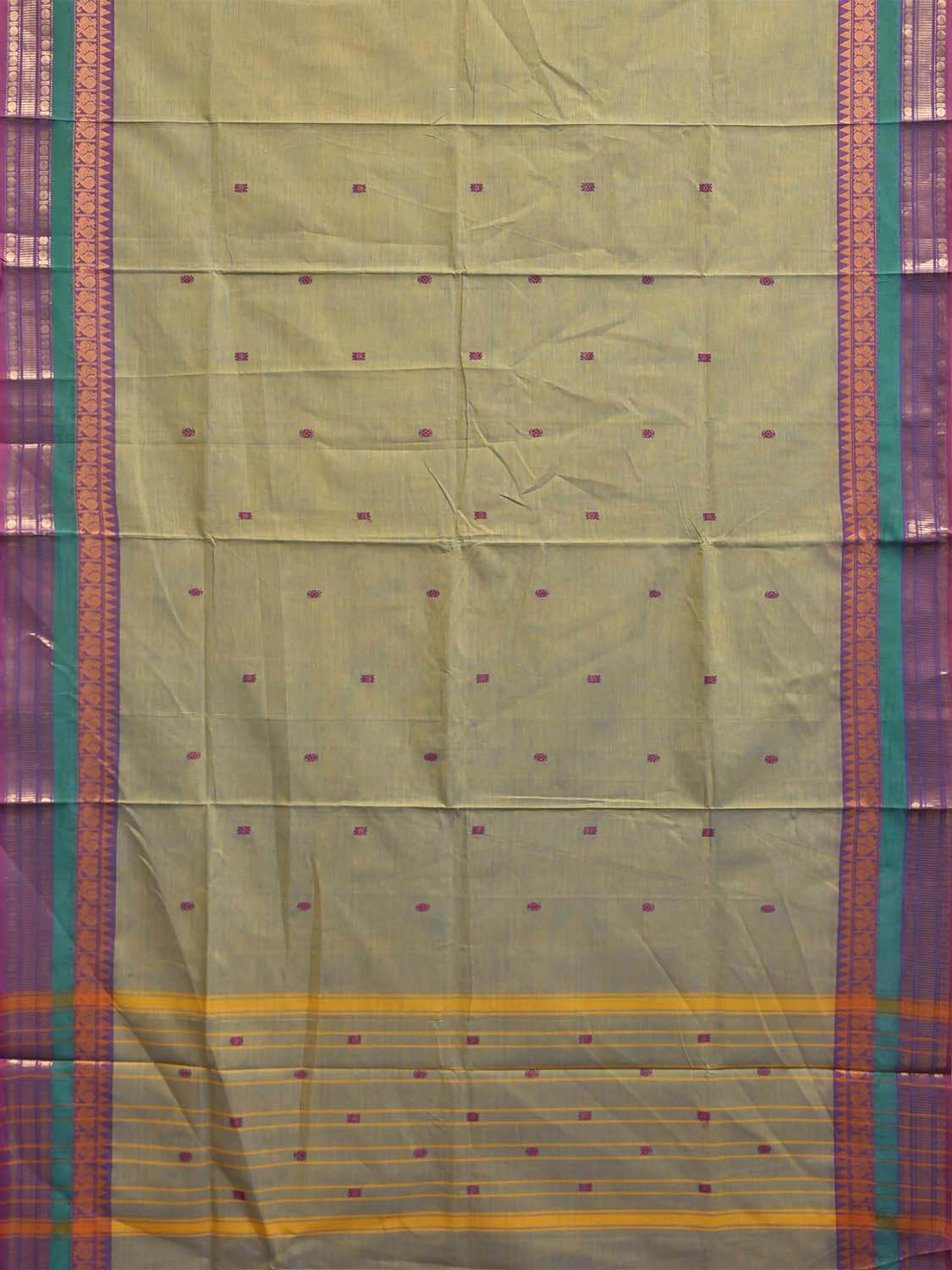 Sea Green Kanchipuram Cotton Saree with Strips Pallu and Border Design. Traditional Simple South Indian Attire Saree for any Casual Occasions. As it’s a cotton saree we advice gentle handwash separately for fabric care. This saree has no blouse.