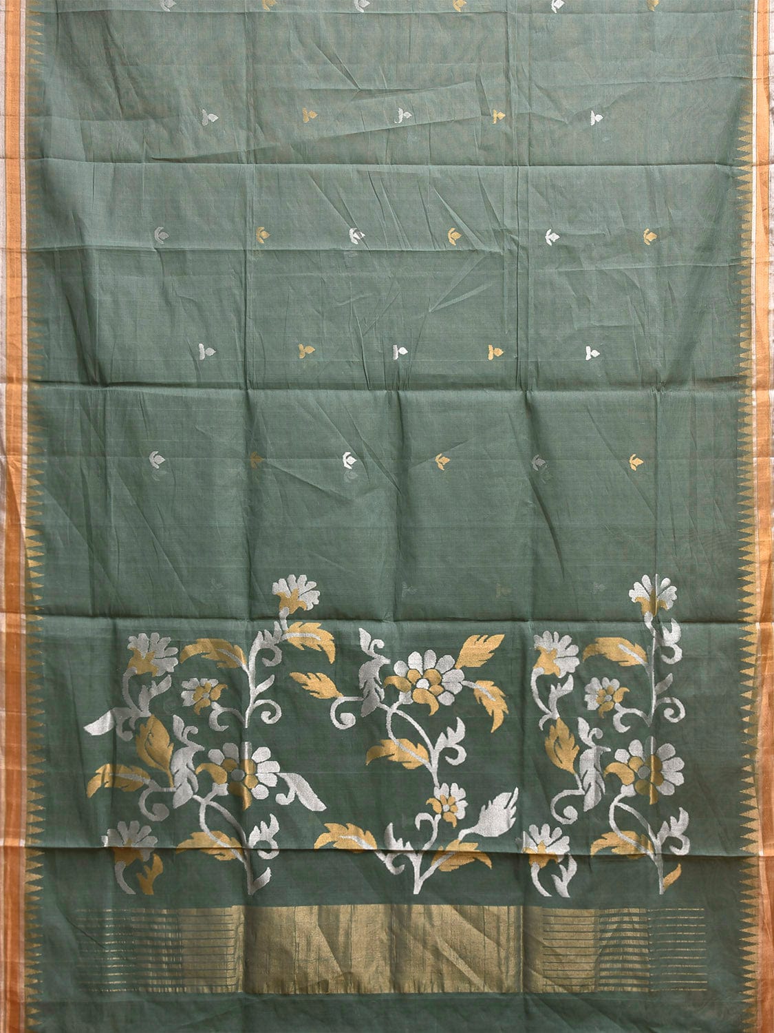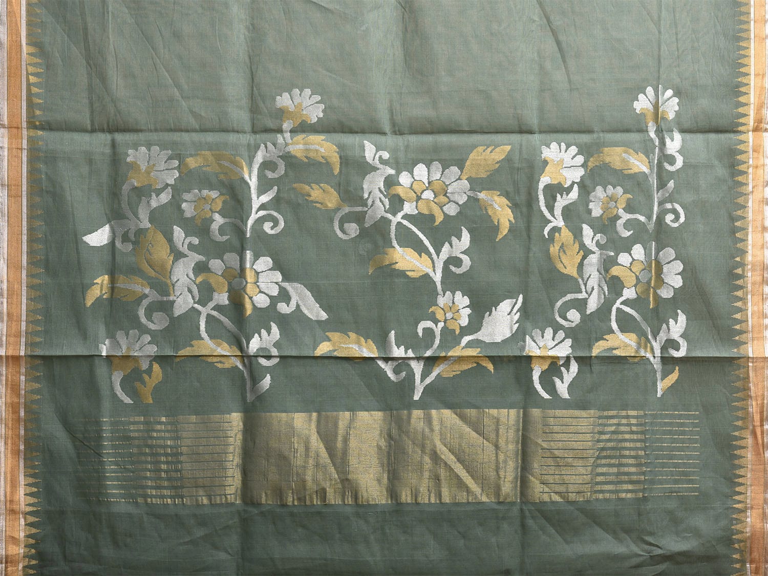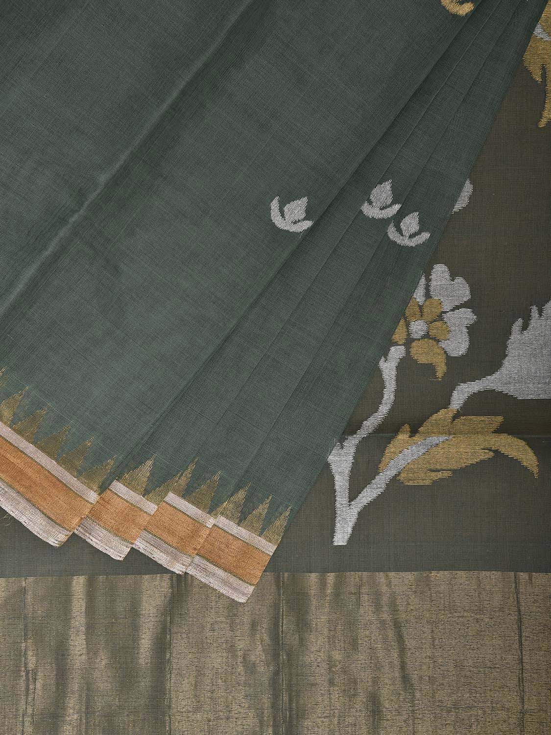 Sea Green Khadi Cotton Handloom Saree with Floral Pallu Design. Khadi saree is primarily woven from cotton and may also include silk, or wool. It is a versatile fabric, cool in summer and warm in winter. For fabric care we advise dry clean.