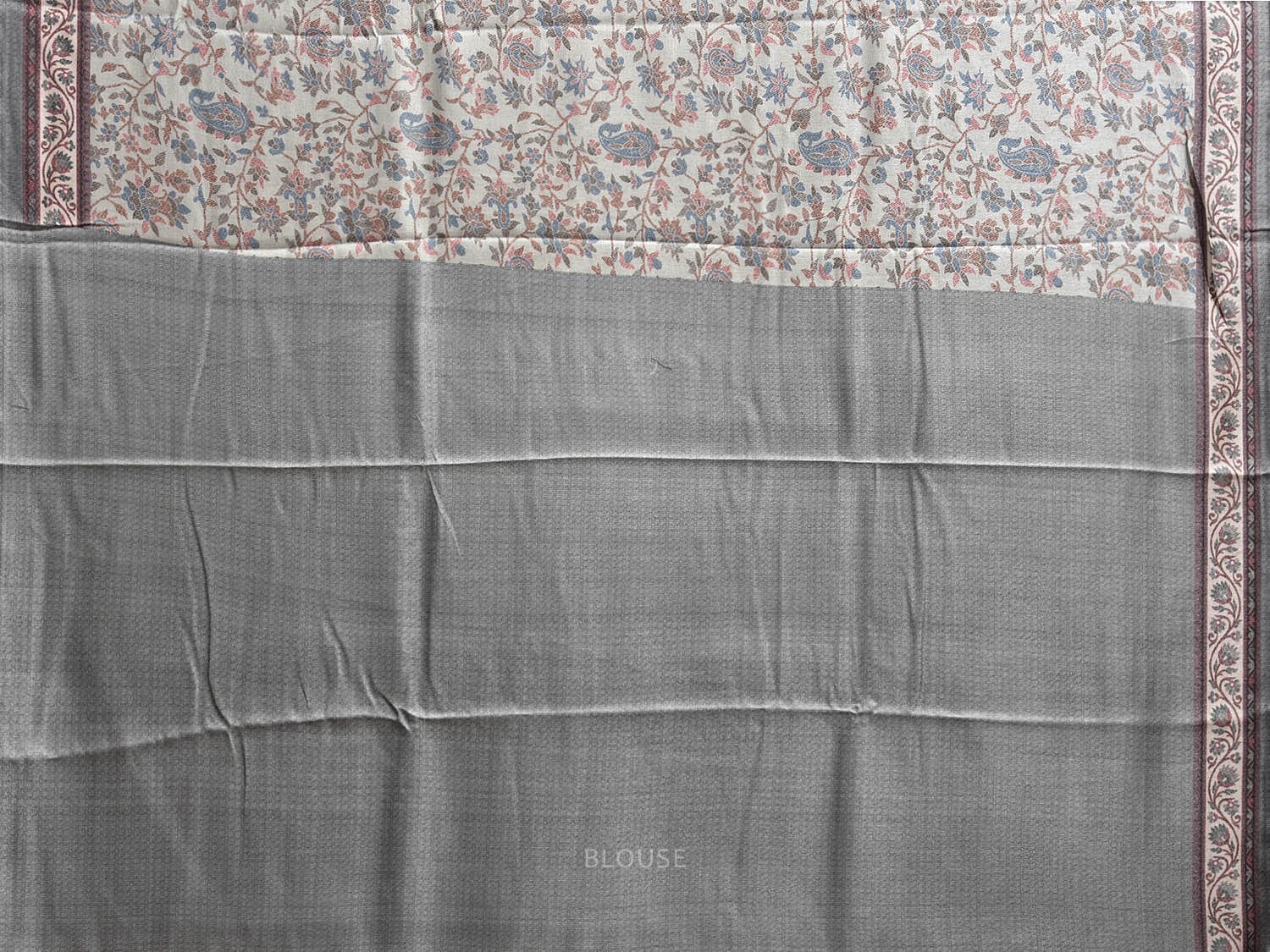Sea Green Pashmina Print Viscose Twill Saree with All Over Floral Design. For fabric care we advise gentle handwash separately.