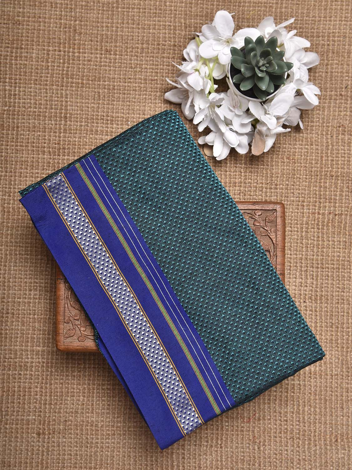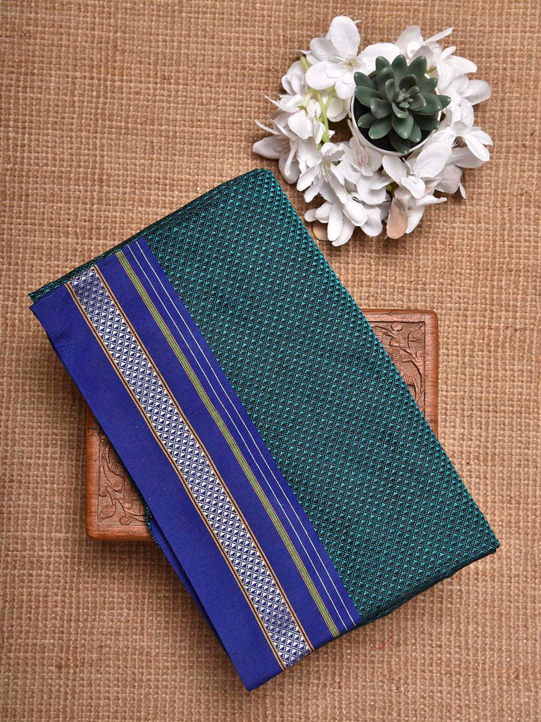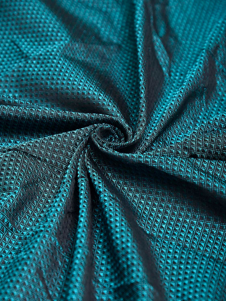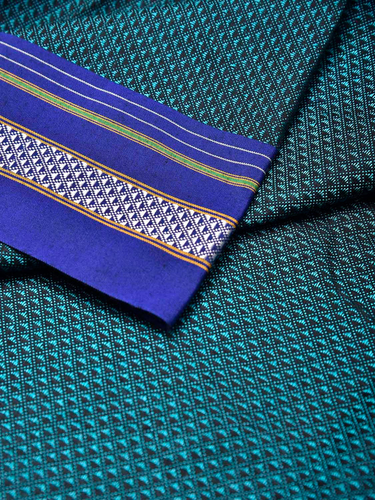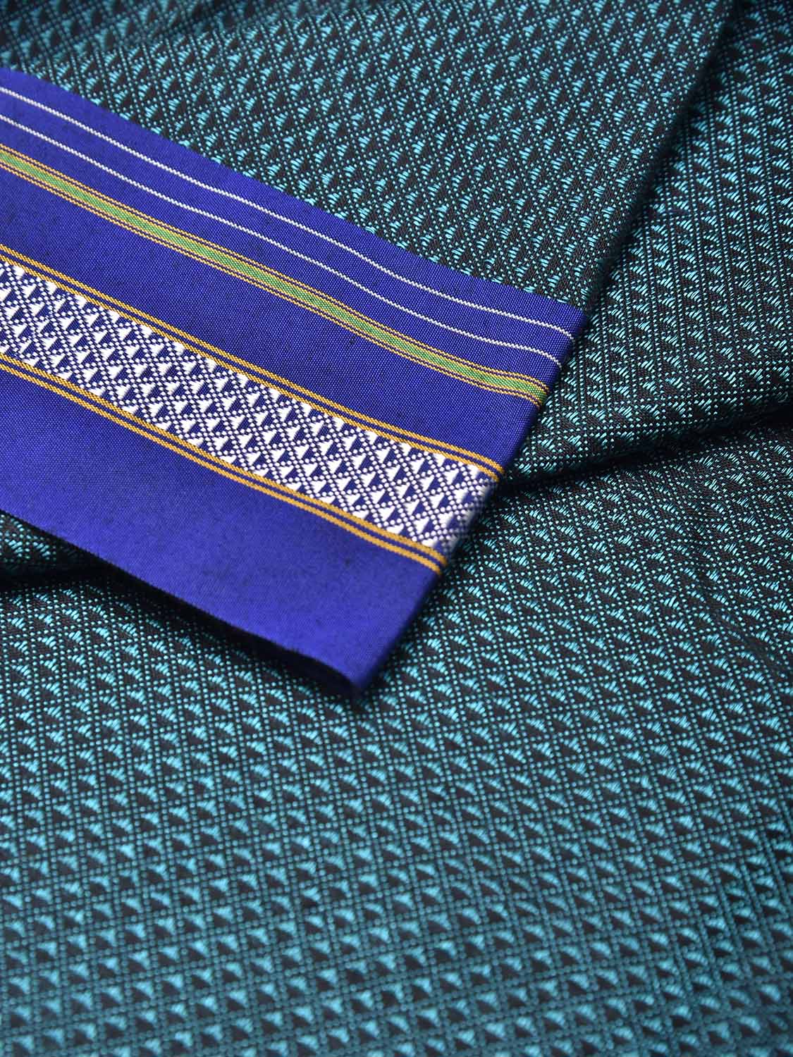 Teal and Blue Jacquard Cotton Viscose Blouse with Border Design 1mt Length 45 Inches Width. Beautiful Pattern Blouse Fabric and Easy to Match to Any Suitable Saree. We Advise Gentle Handwash for Fabric Care.