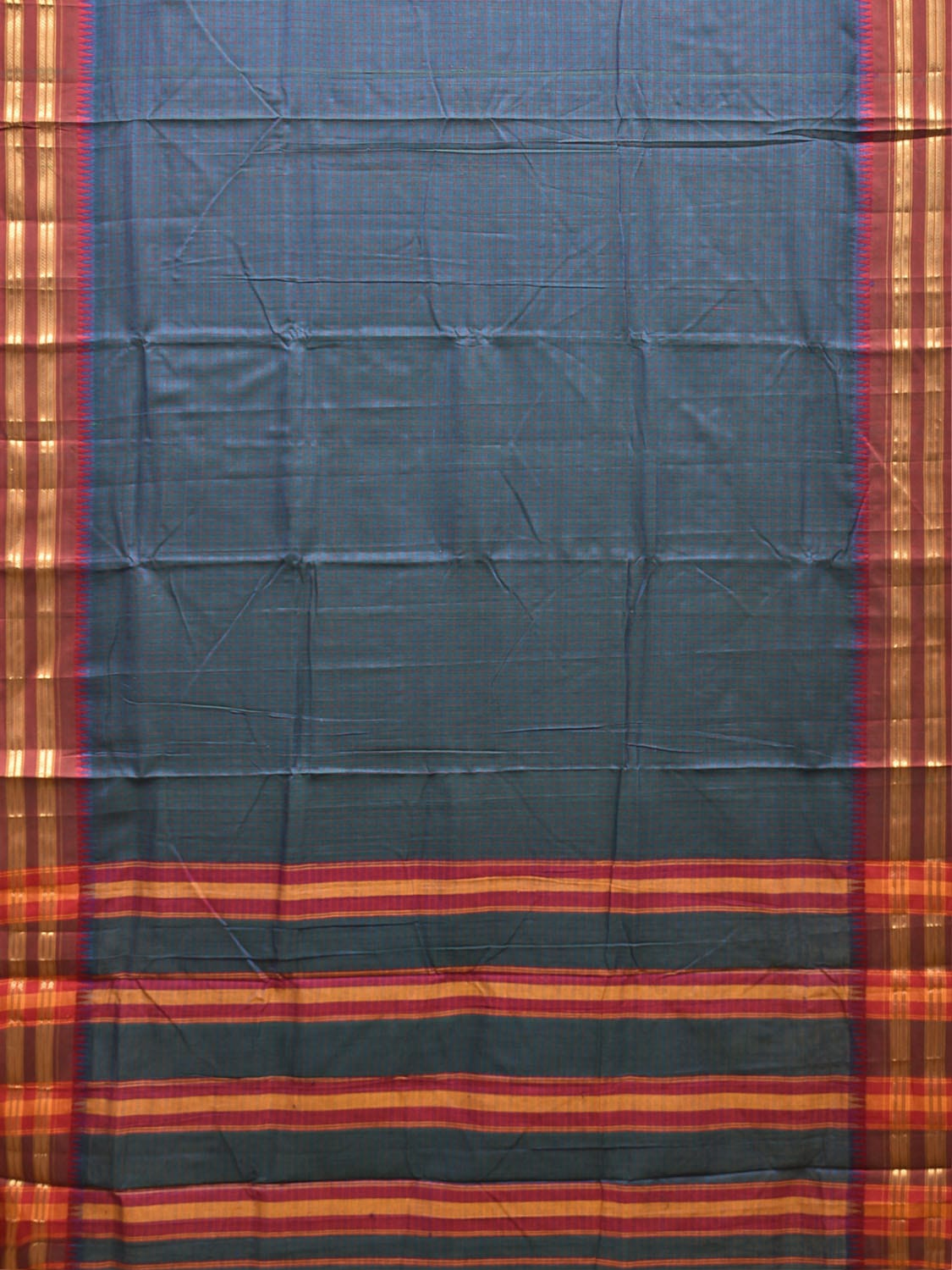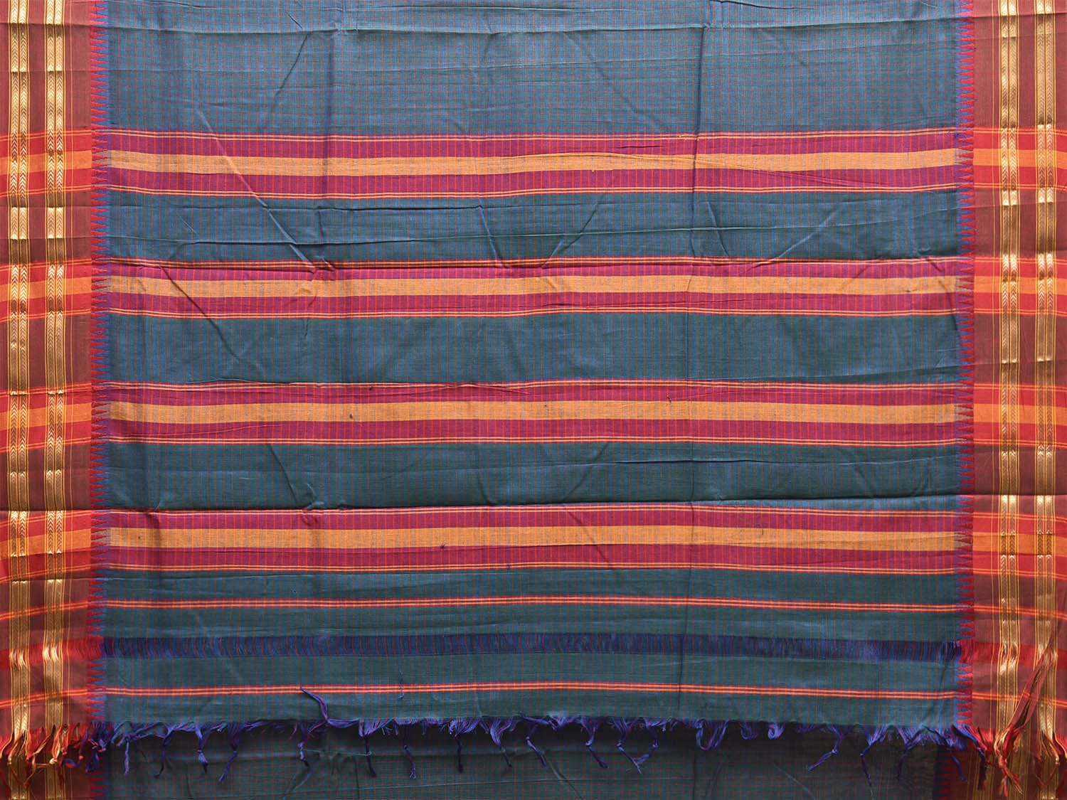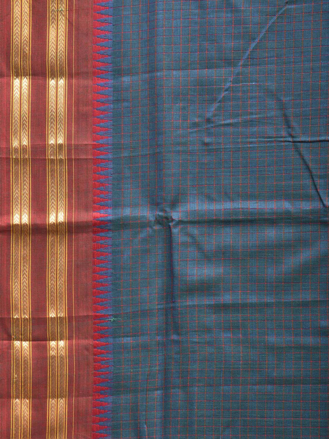 Teal and Pink ilkal Cotton Viscose Saree with Checks and Strips Pallu Design No Blouse. For fabric care we advise gentle handwash separately. This saree has no blouse.