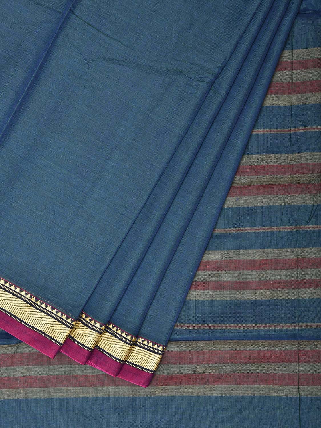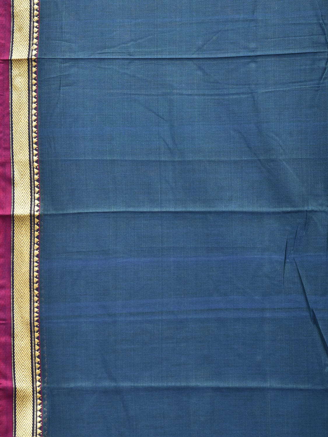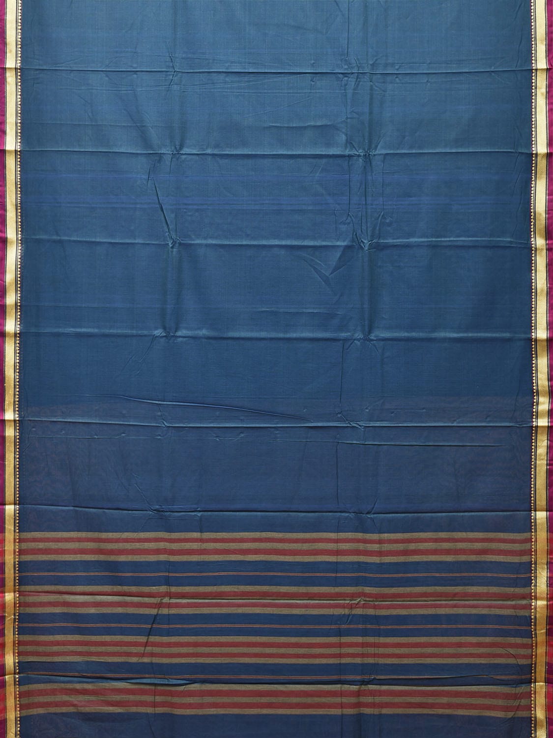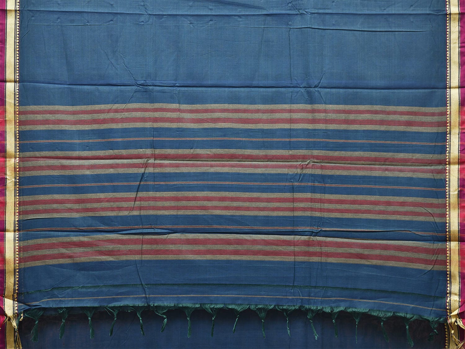 Teal and Pink Narayanpet Cotton Plain Saree with Strips Pallu Design No Blouse. This saree has no blouse.