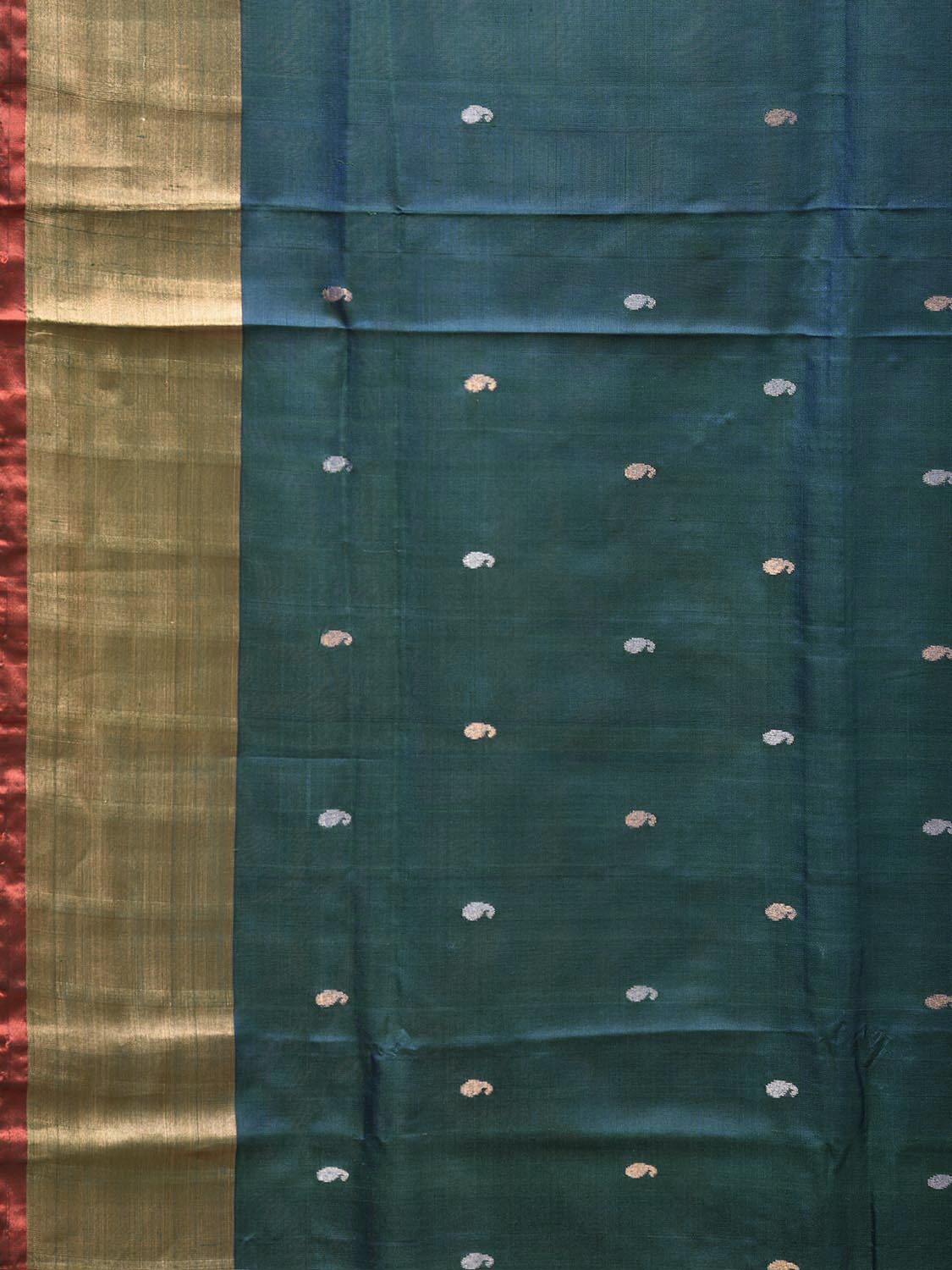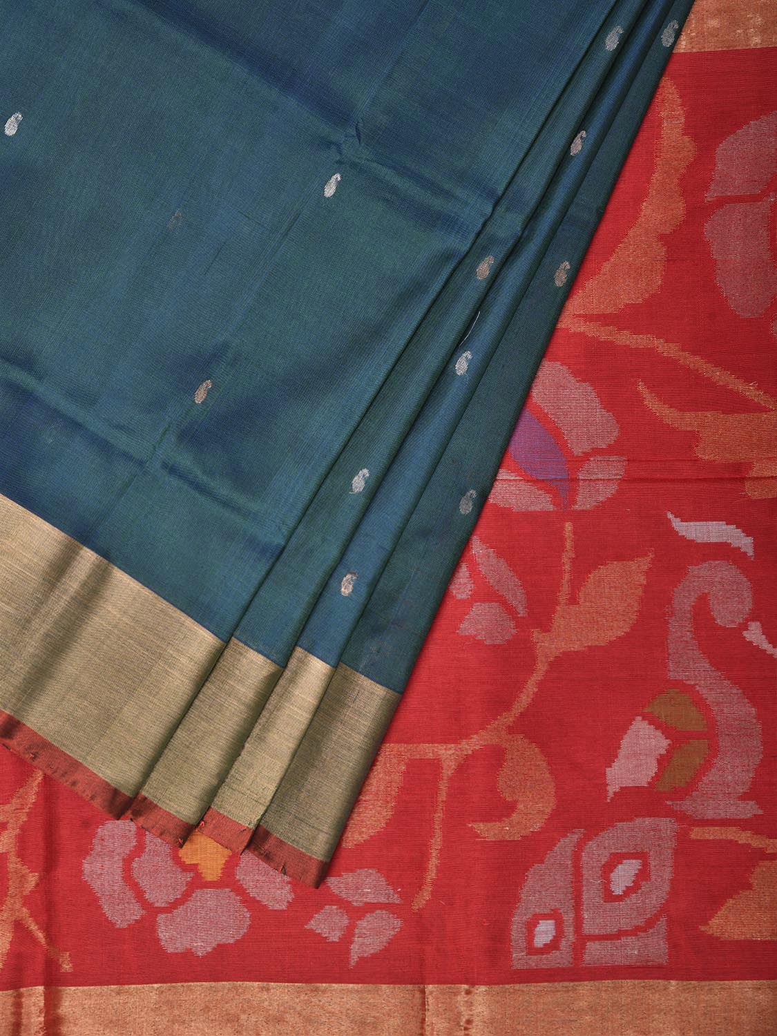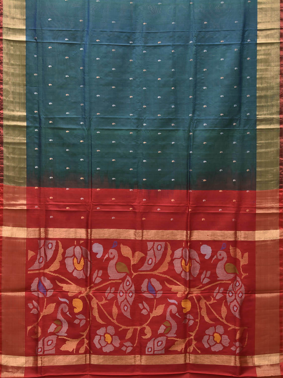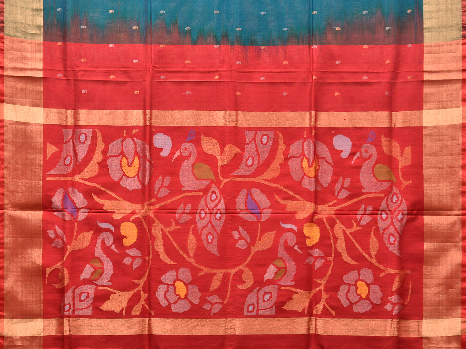 Teal and Red Uppada Pure Silk Handloom Saree with Peacocks Pallu Design
