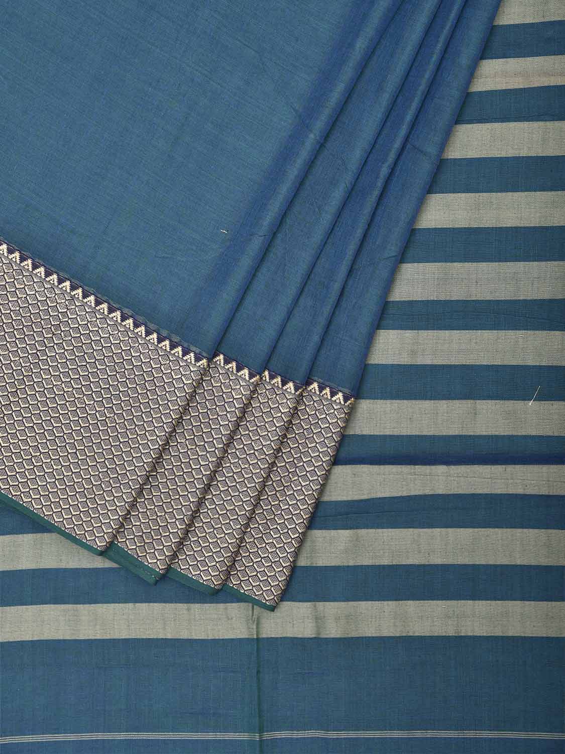 Teal Kanchipuram Cotton Plain Saree with Strips Pallu and Border Design No Blouse. Traditional South Indian Attire Saree for any Special Occasions. For fabric care we advice dry clean. This saree has no blouse.