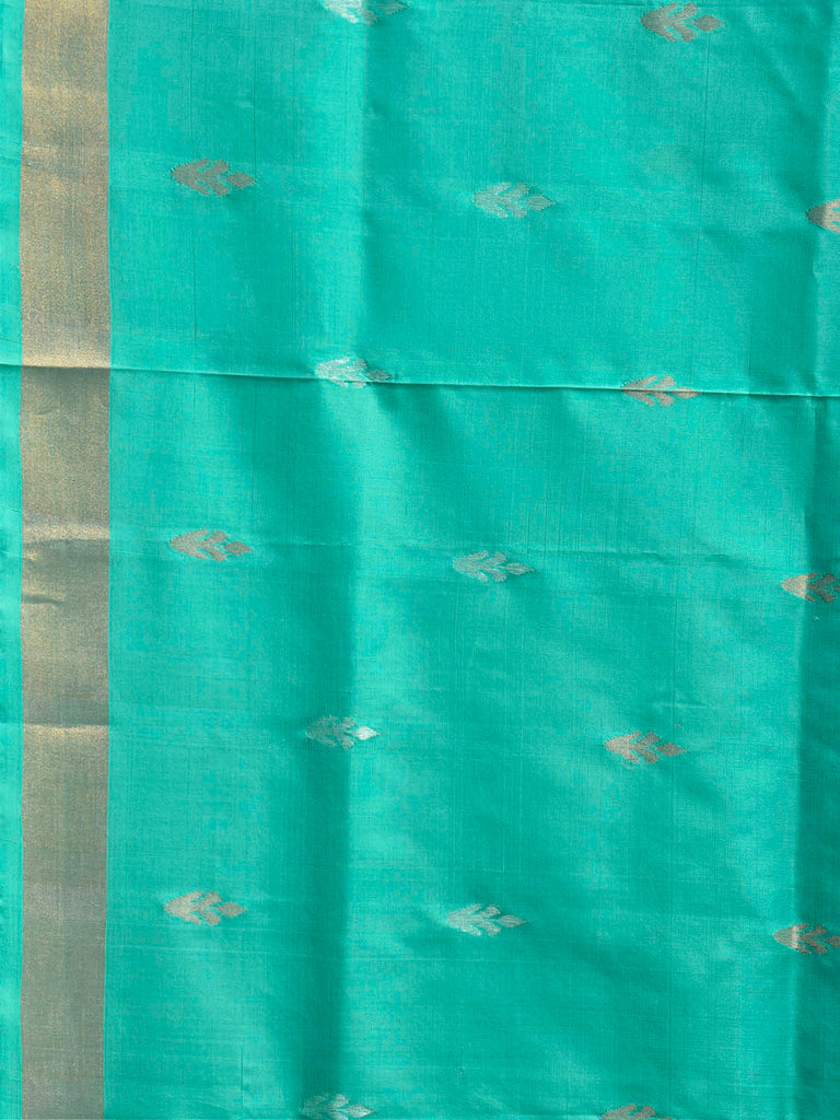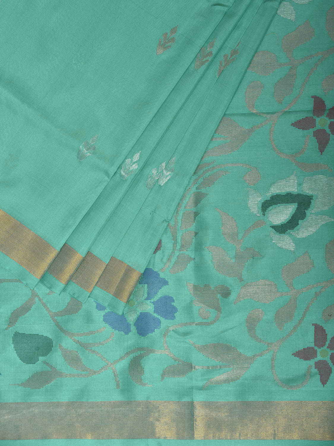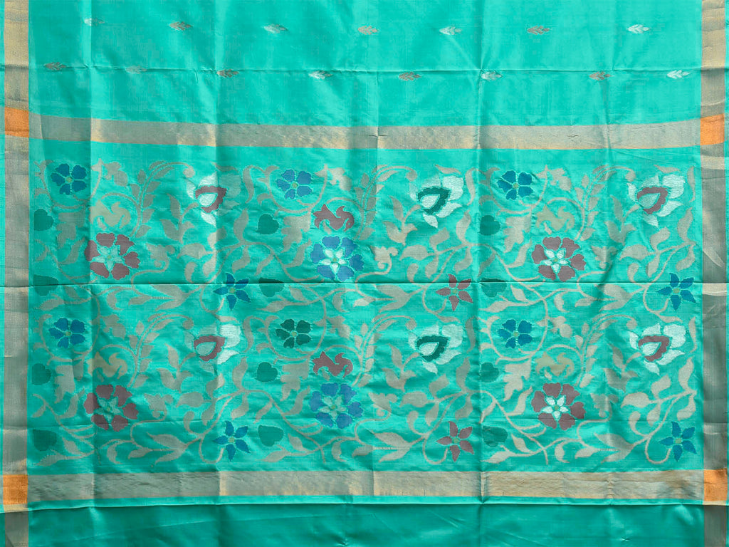 Turquoise Uppada Silk Handloom Saree with Floral Pallu Design