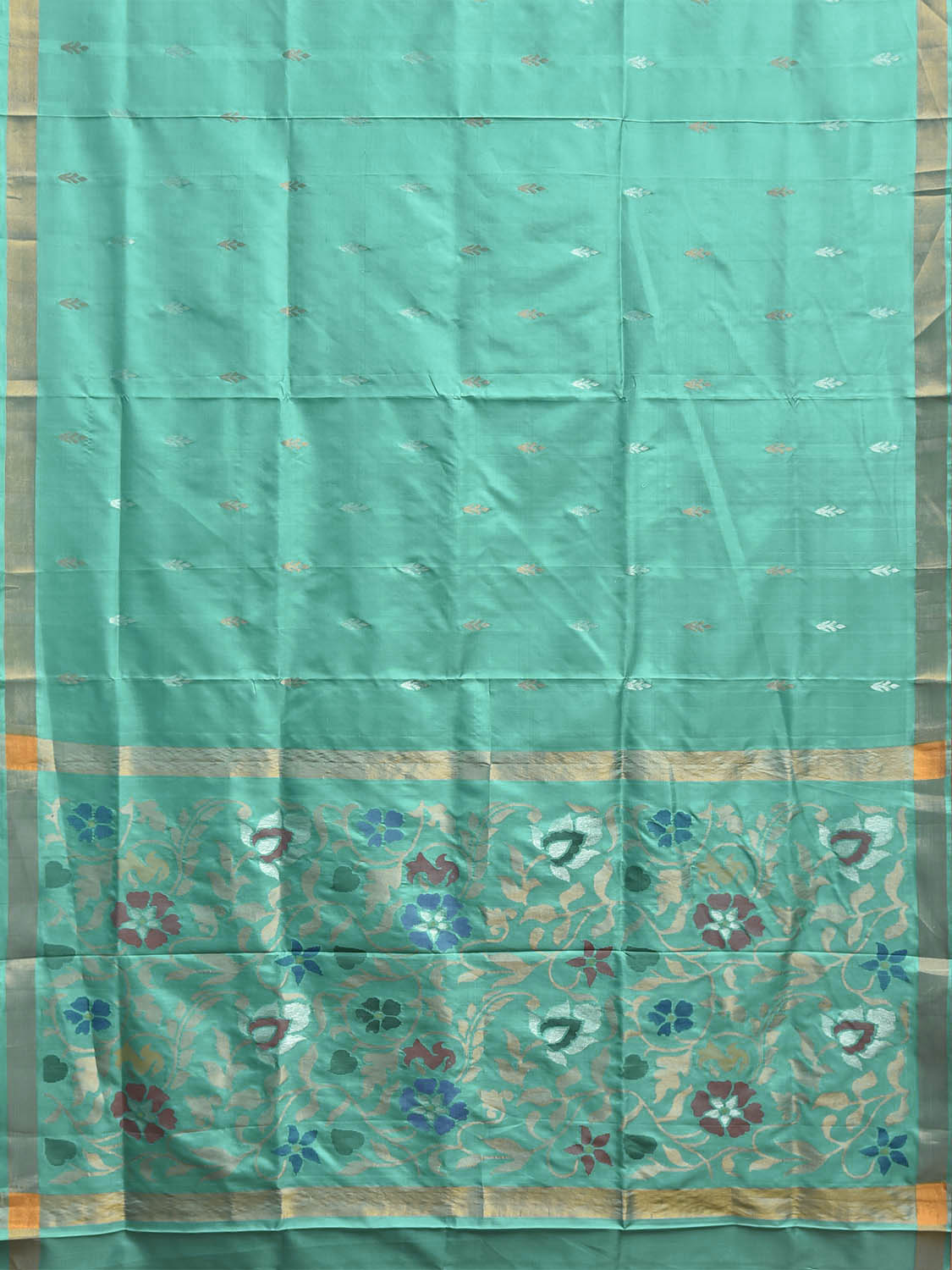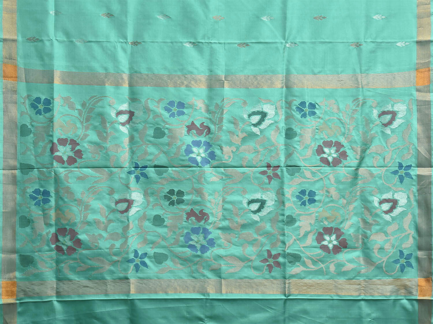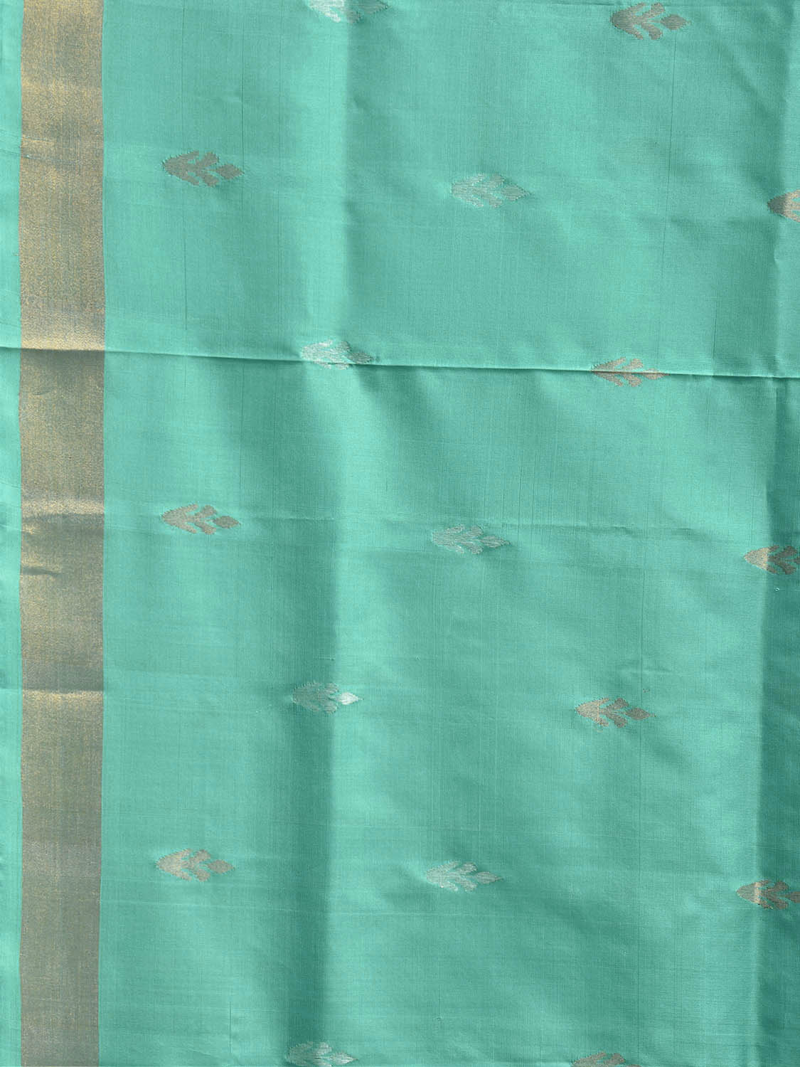 Turquoise Uppada Silk Handloom Saree with Floral Pallu Design