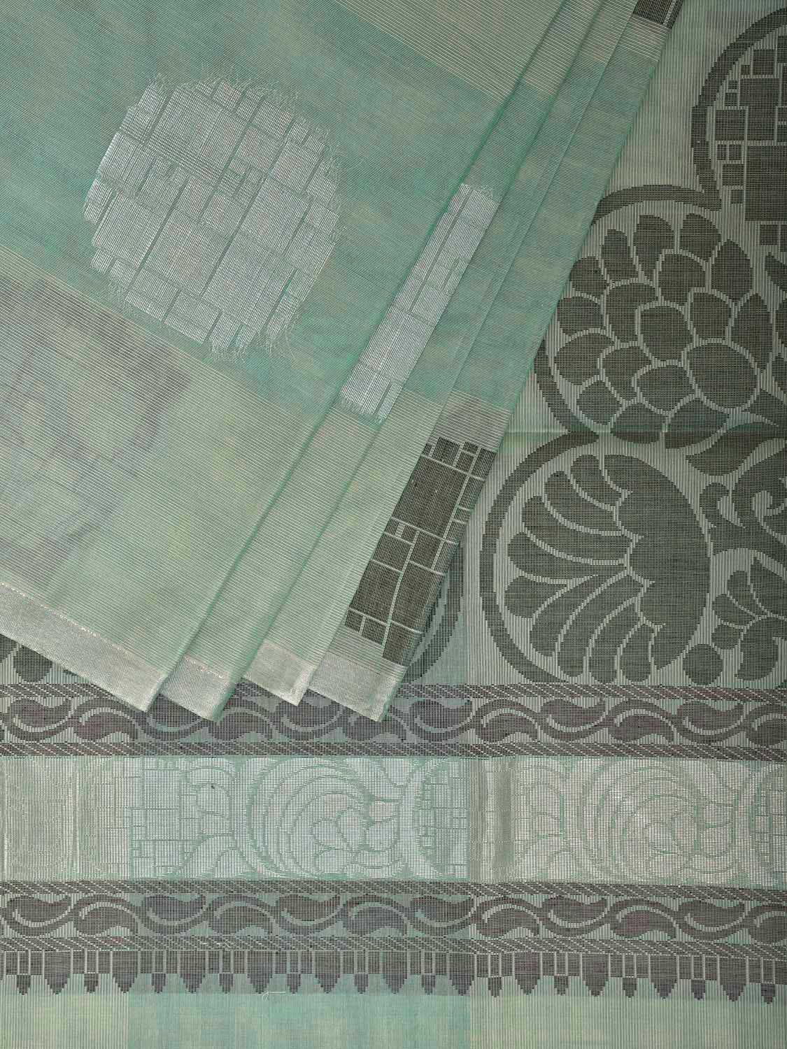 Turquoise Venkatagiri Cotton Saree with Body Buta and Pallu Design. Venkatagiri sarees are known for very fine cotton hand woven cotton saree. They are light weight and are traditional saree made in Andhra Pradesh. For fabric care we advice gentle handwash separately.