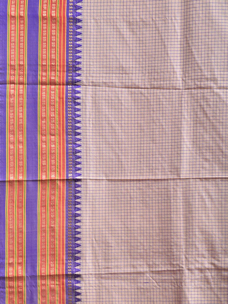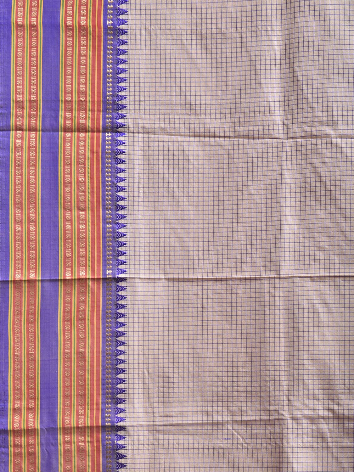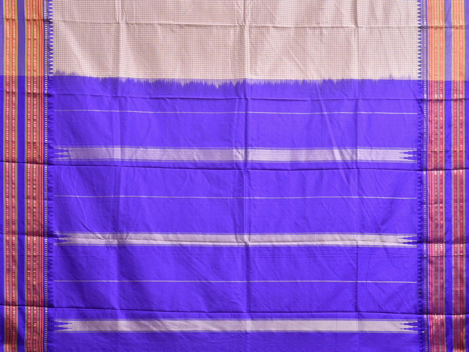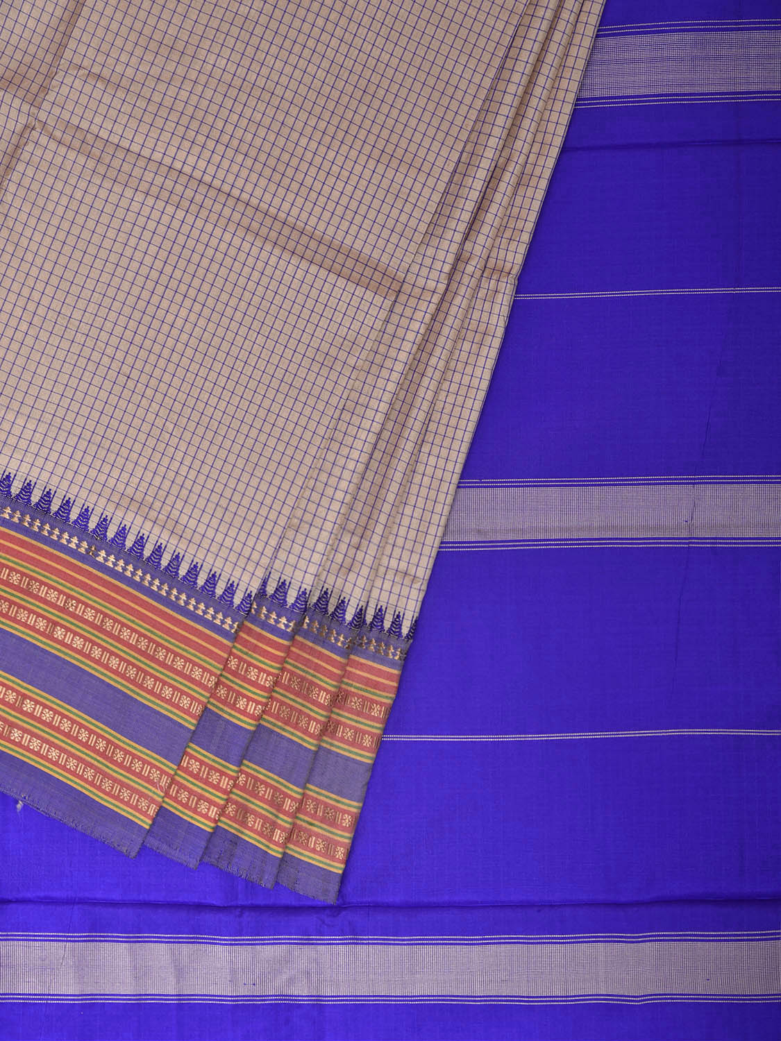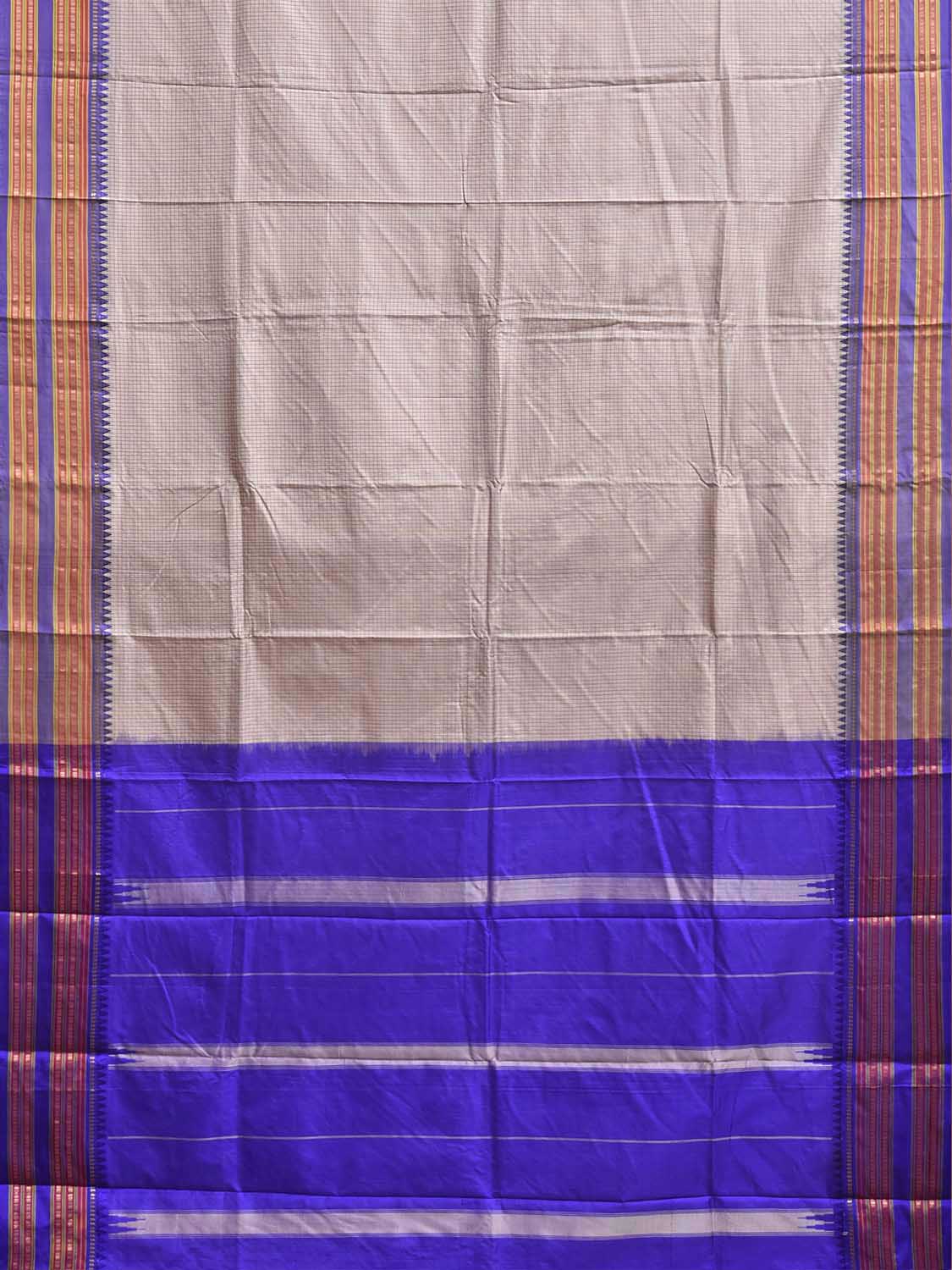 White and Blue Narayanpet Silk Saree with Check Design. Saree length is 6.2mts.