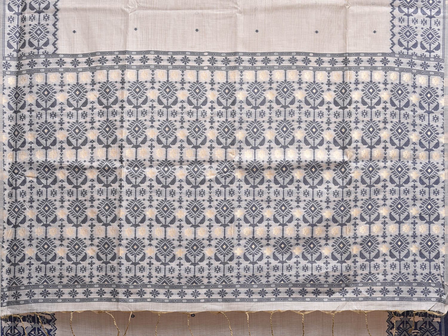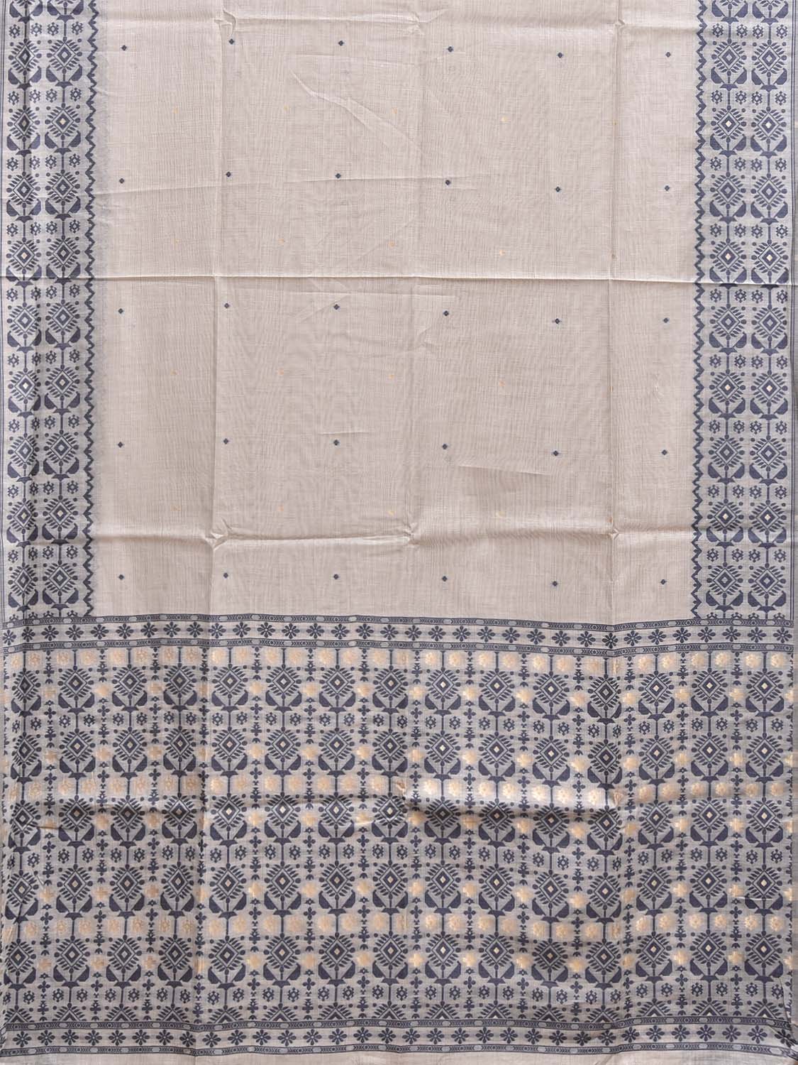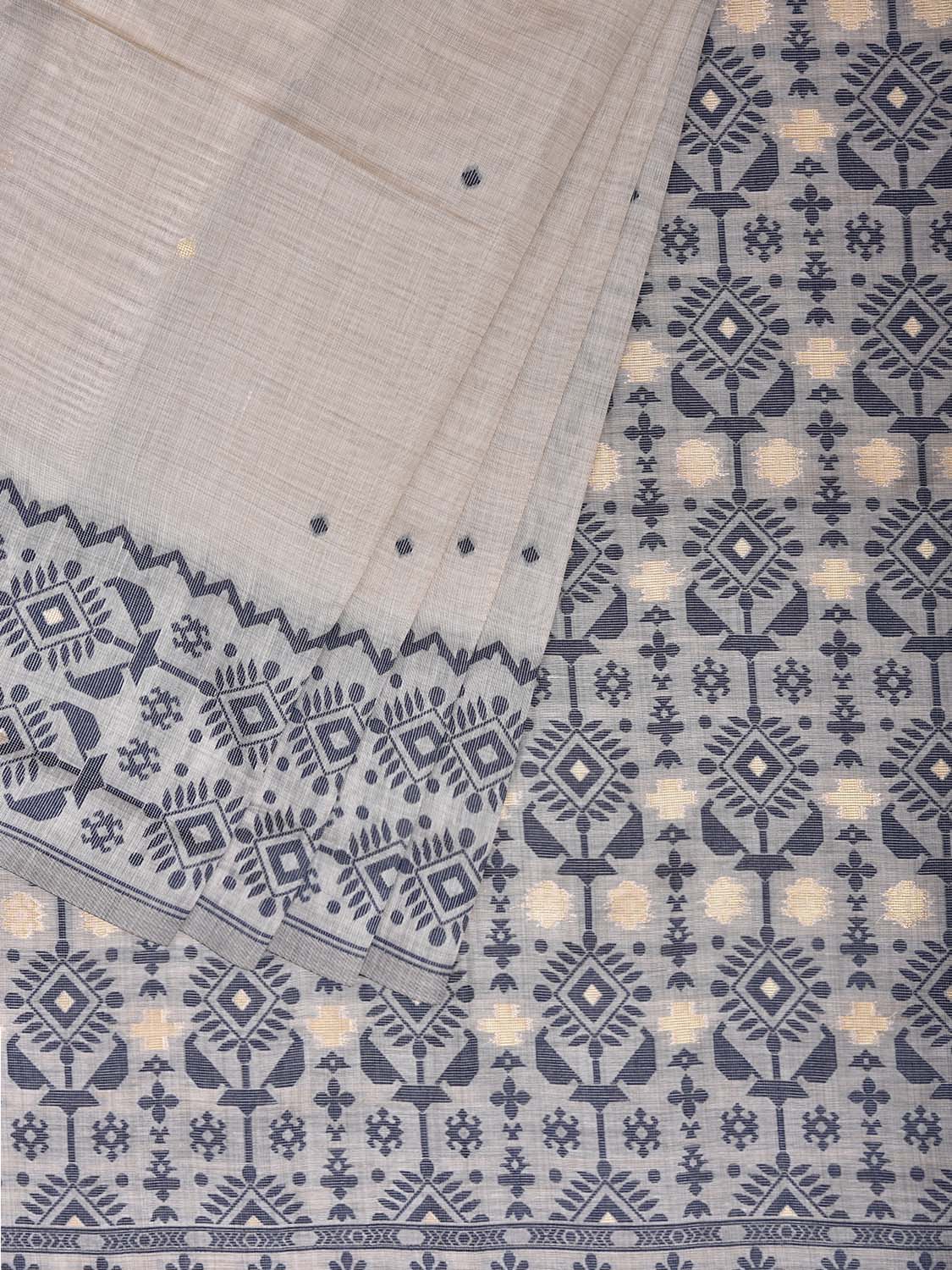 White and Dark Blue Dhakai Jamdani Cotton Viscose Saree with Border and Pallu Design dj0244