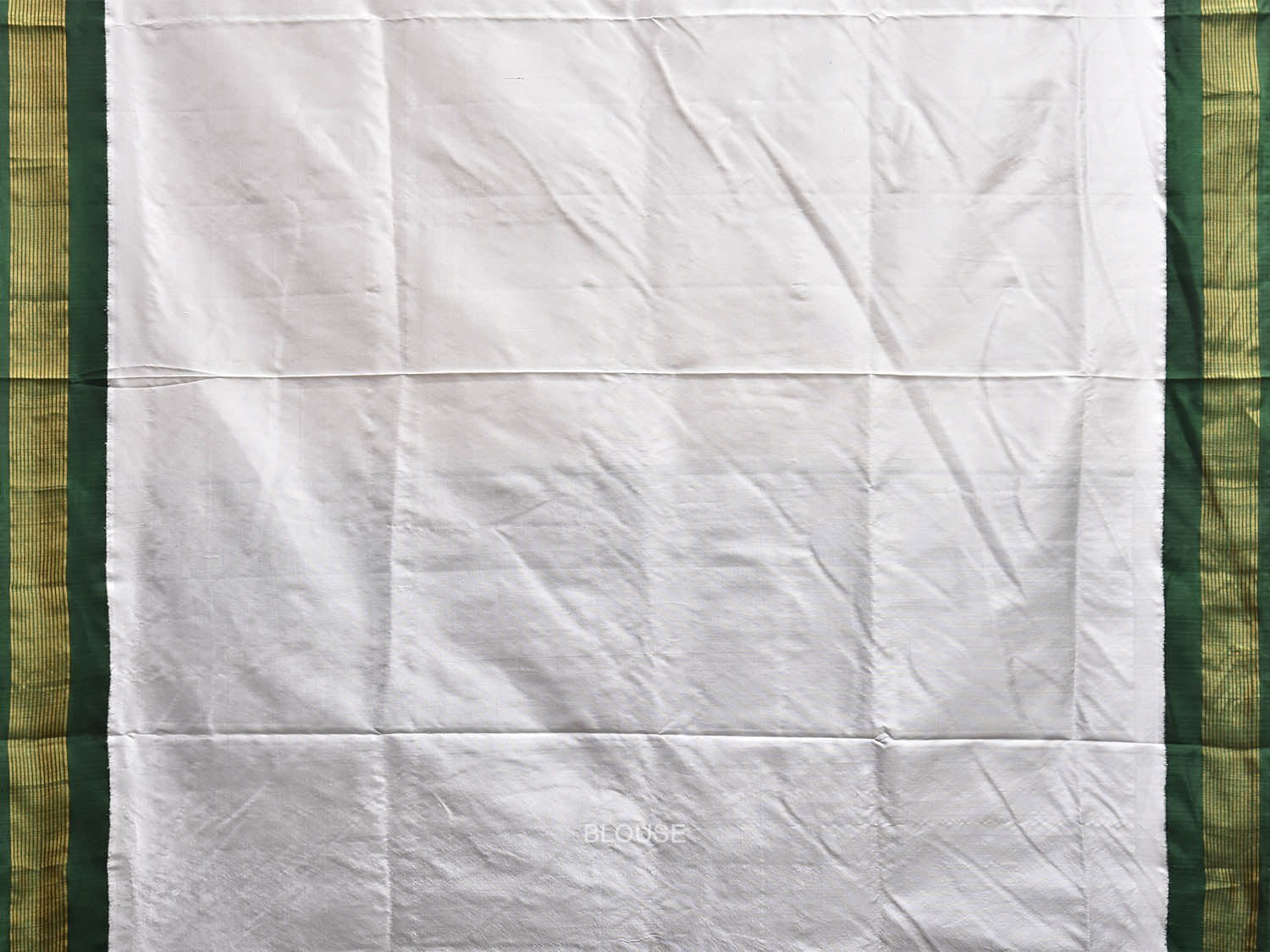 White and Green Gadwal Silk Handloom Plain Saree with Strips Pallu Design. Gadwal Sarees are known for their traditional design of border and pallu made of silk and body being either cotton or silk. They are known as Sico sarees for border and pallu being silk and body being cotton. We advice dry clean for fabric care