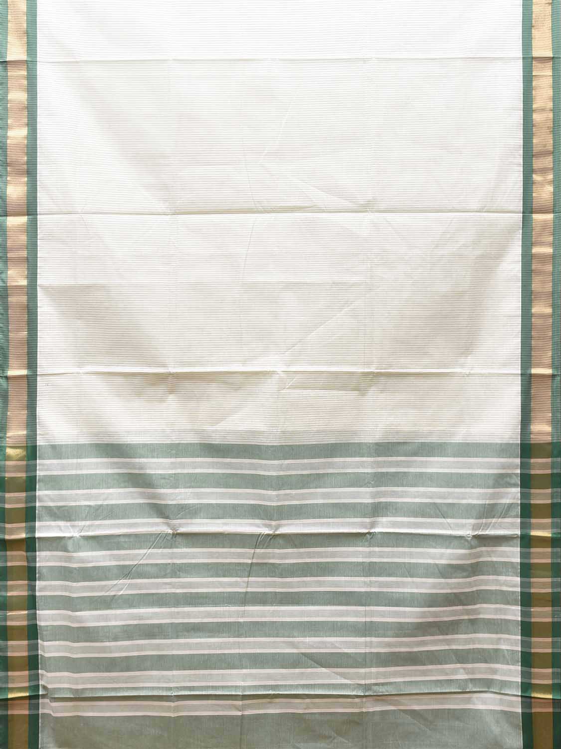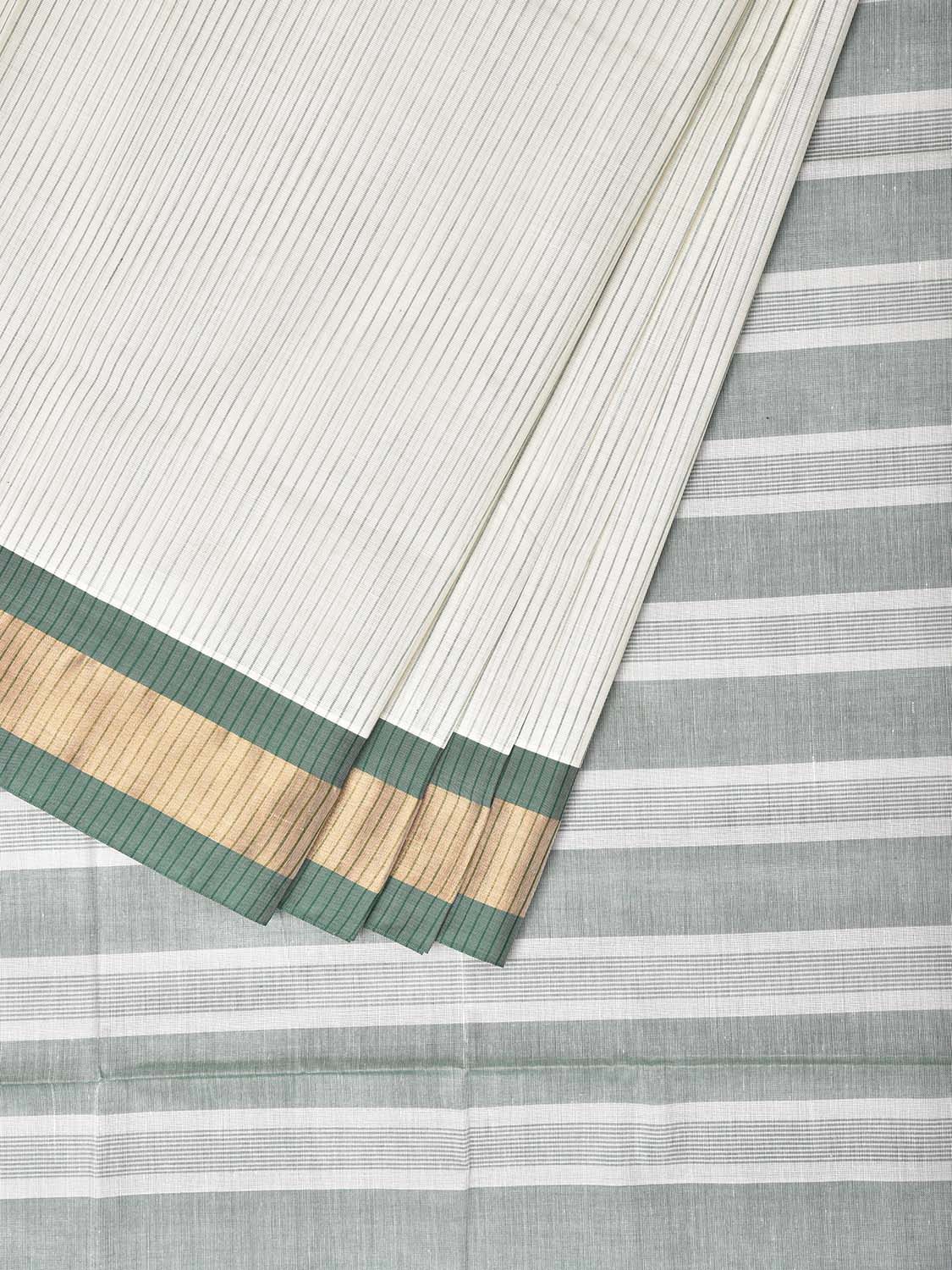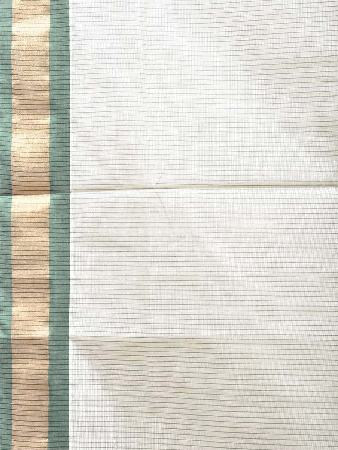 White and Green Venkatagiri Cotton Saree with Strips Body and Pallu Design. Venkatagiri sarees are known for very fine cotton hand woven cotton saree. They are light weight and are traditional saree made in Andhra Pradesh. For fabric care we advice gentle handwash separately.