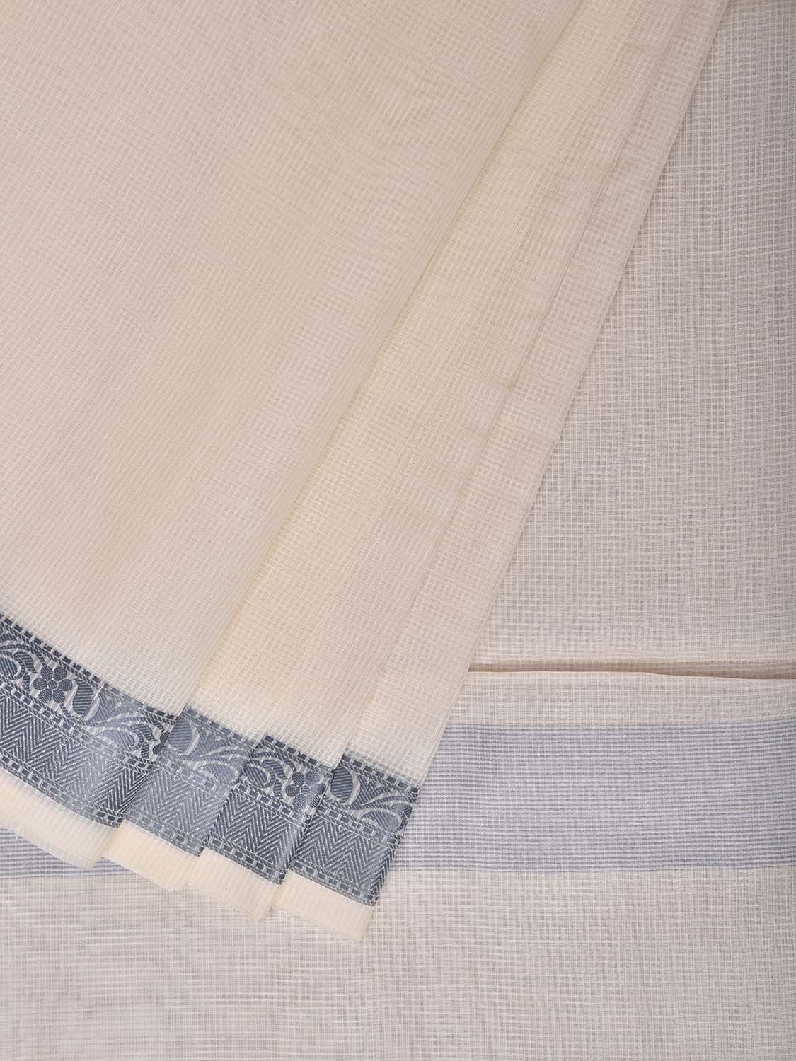 White and Grey Dhakai Jamdani Cotton Viscose Kota Saree with Small Border Design. These are some of the traditional Dhakai Jamdani designs, these sarees have geometric designs and sometimes floral or combination of both. We advice gentle handwash separately for fabric care.