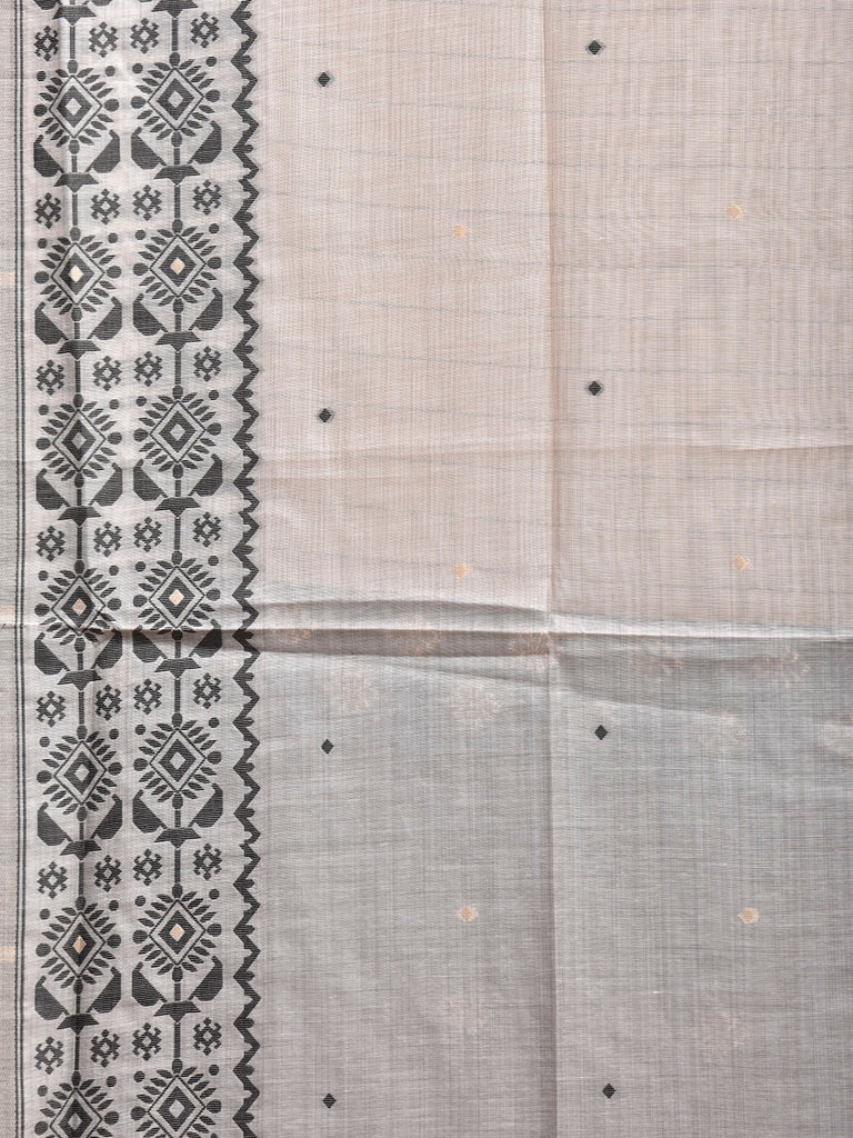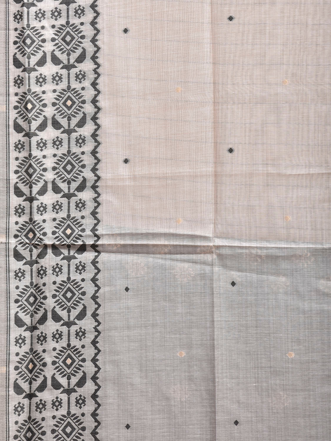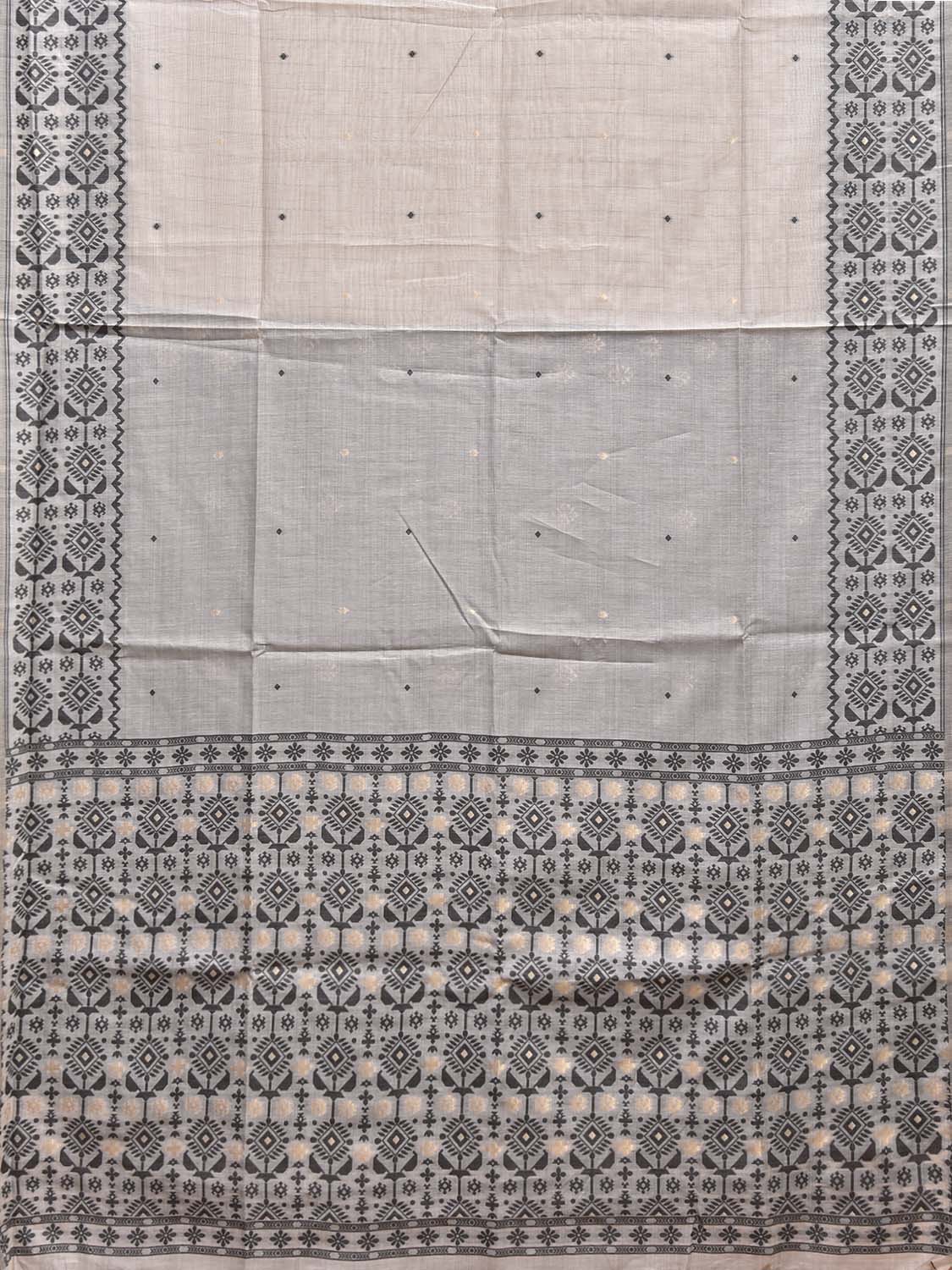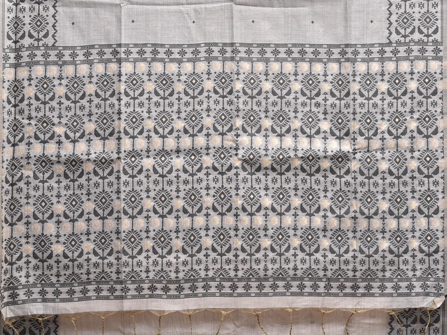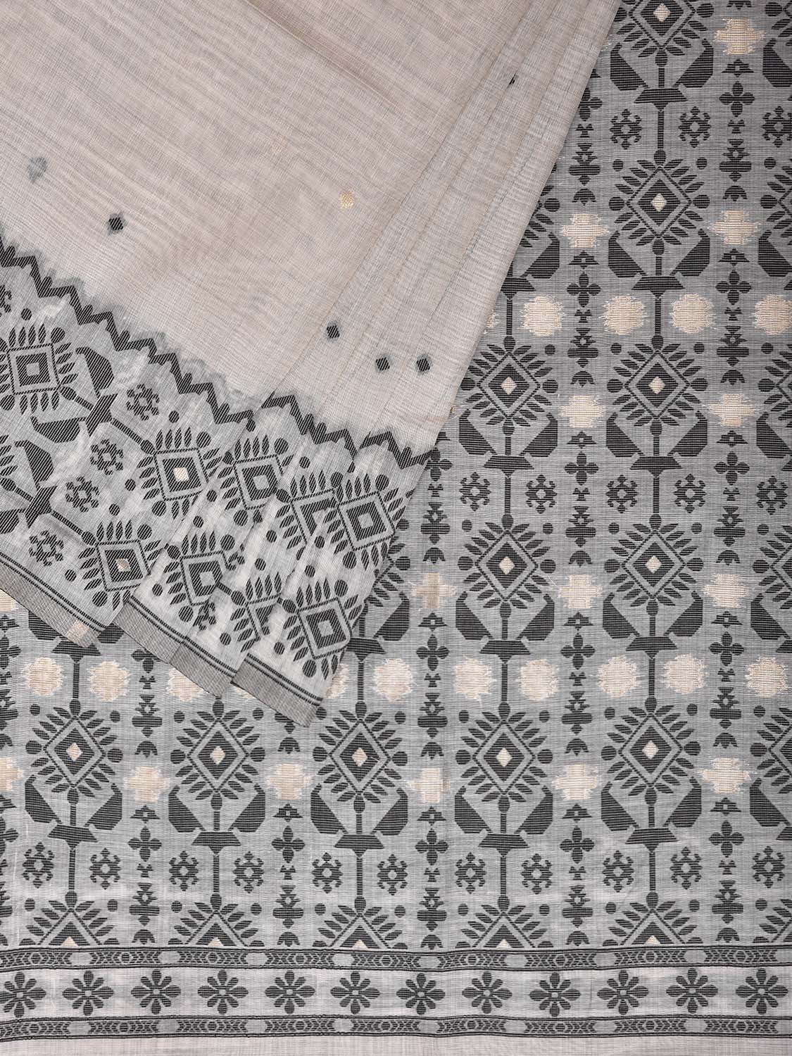 White and Grey Dhakai Jamdani Cotton Viscose Saree with Border and Pallu Design dj0242