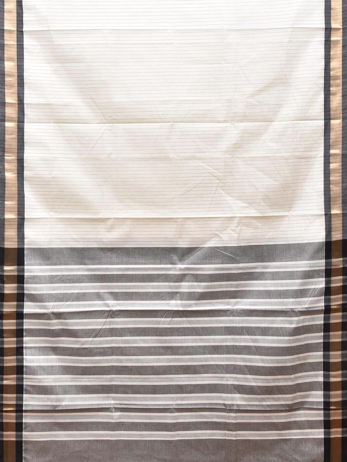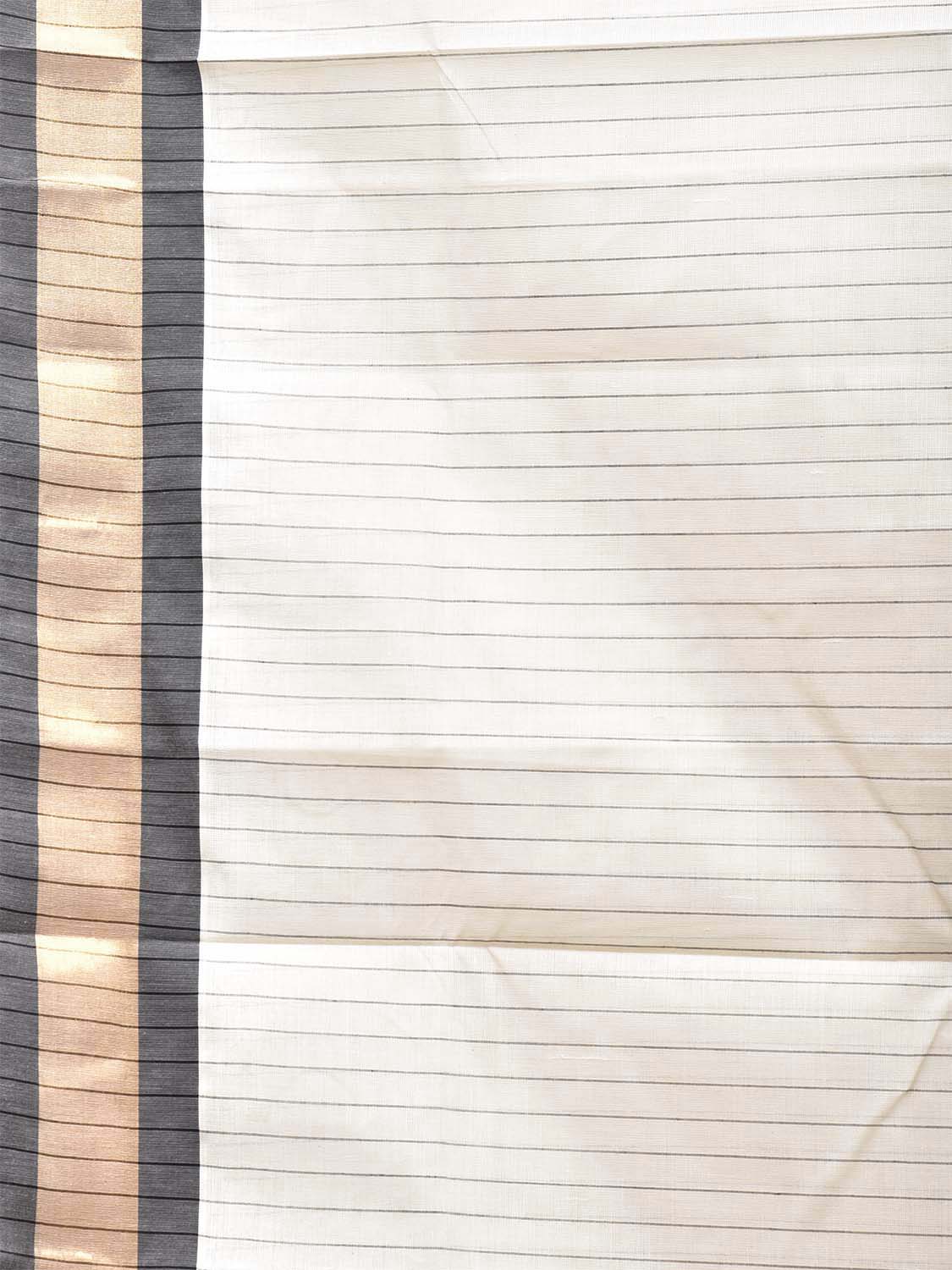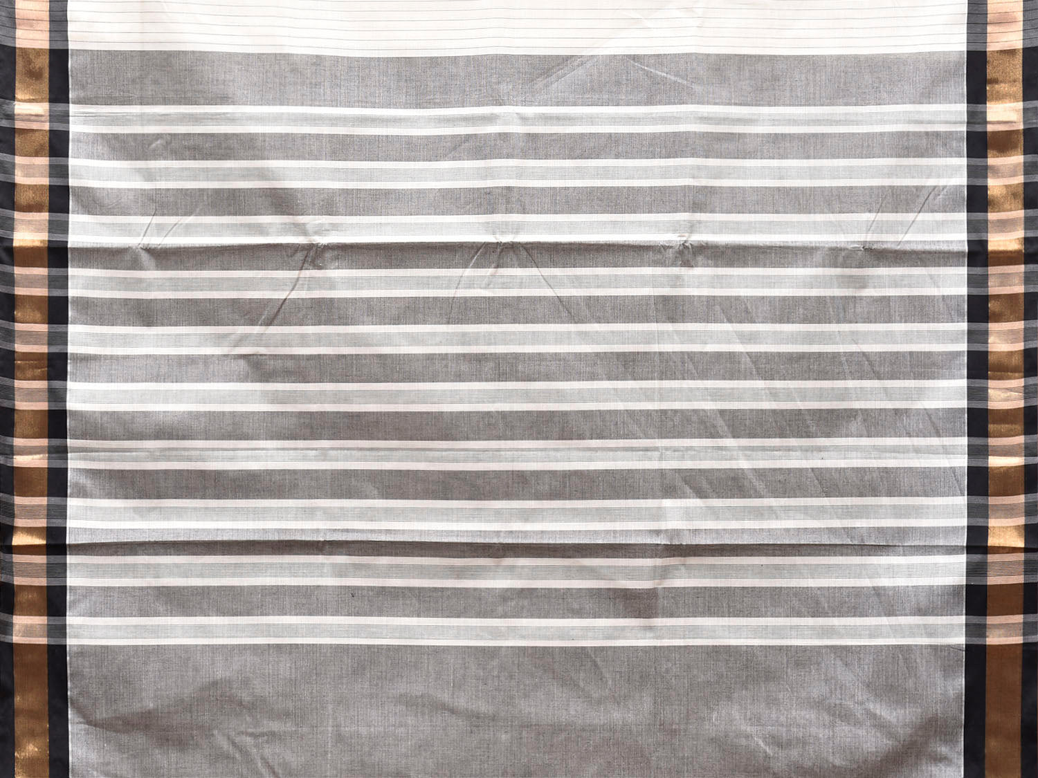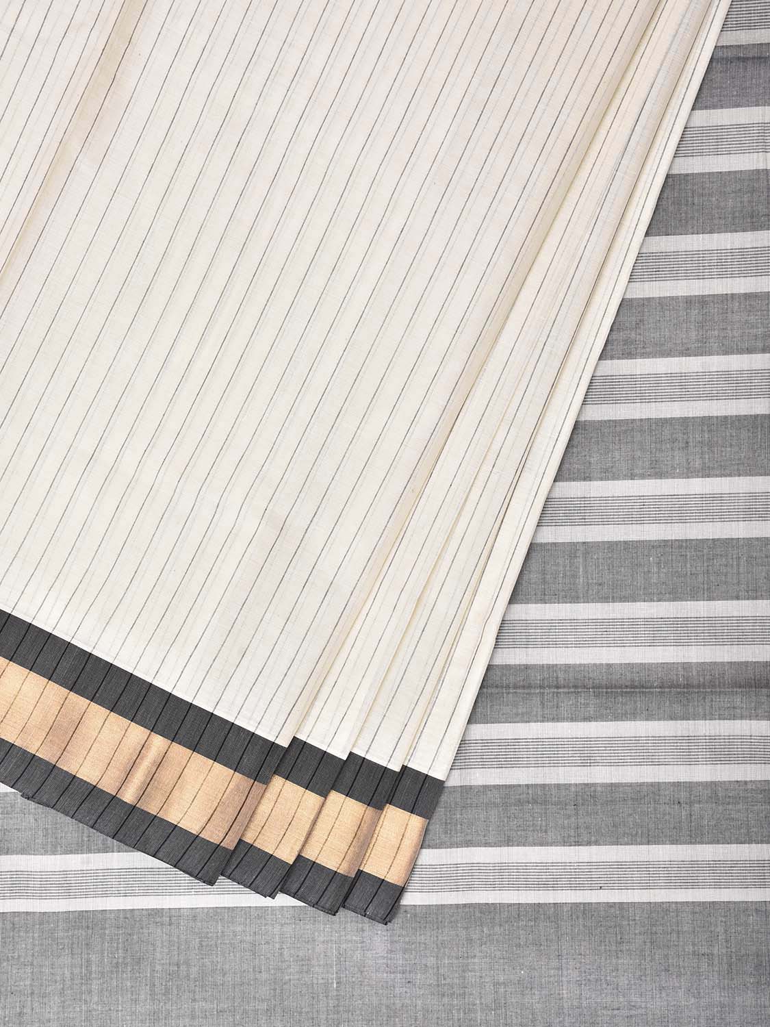 White and Grey Venkatagiri Cotton Saree with Strips Body and Pallu Design. Venkatagiri sarees are known for very fine cotton hand woven cotton saree. They are light weight and are traditional saree made in Andhra Pradesh. For fabric care we advice gentle handwash separately.