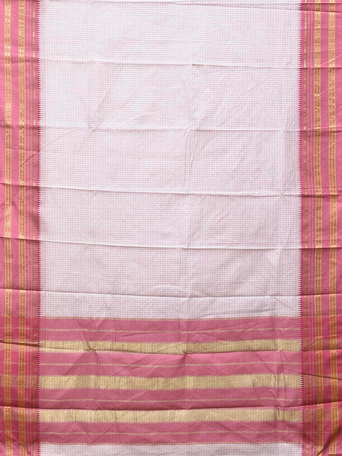 White and Pink Bamboo Cotton Viscose Silk Saree with Checks Design No Blouse bc1115