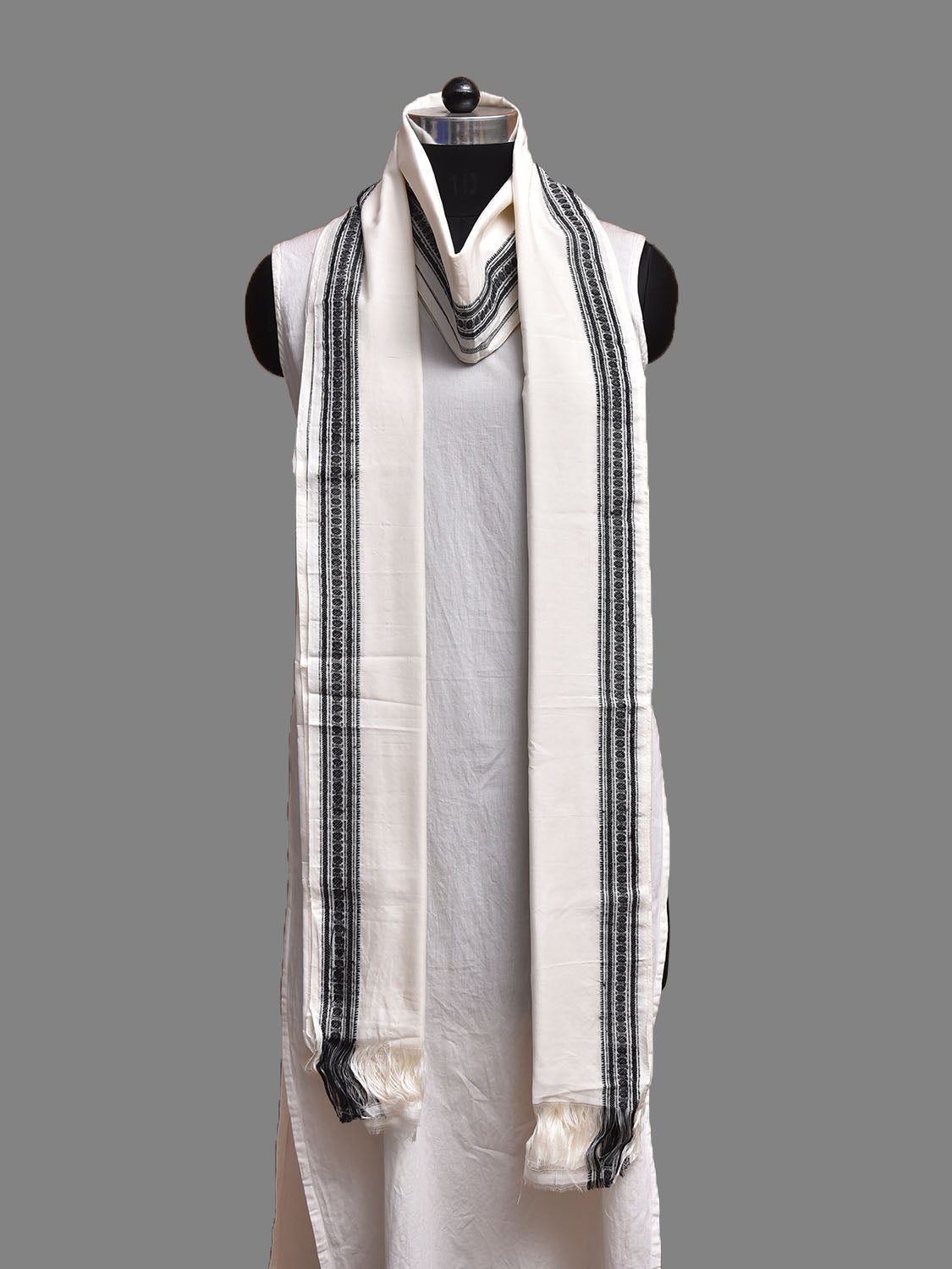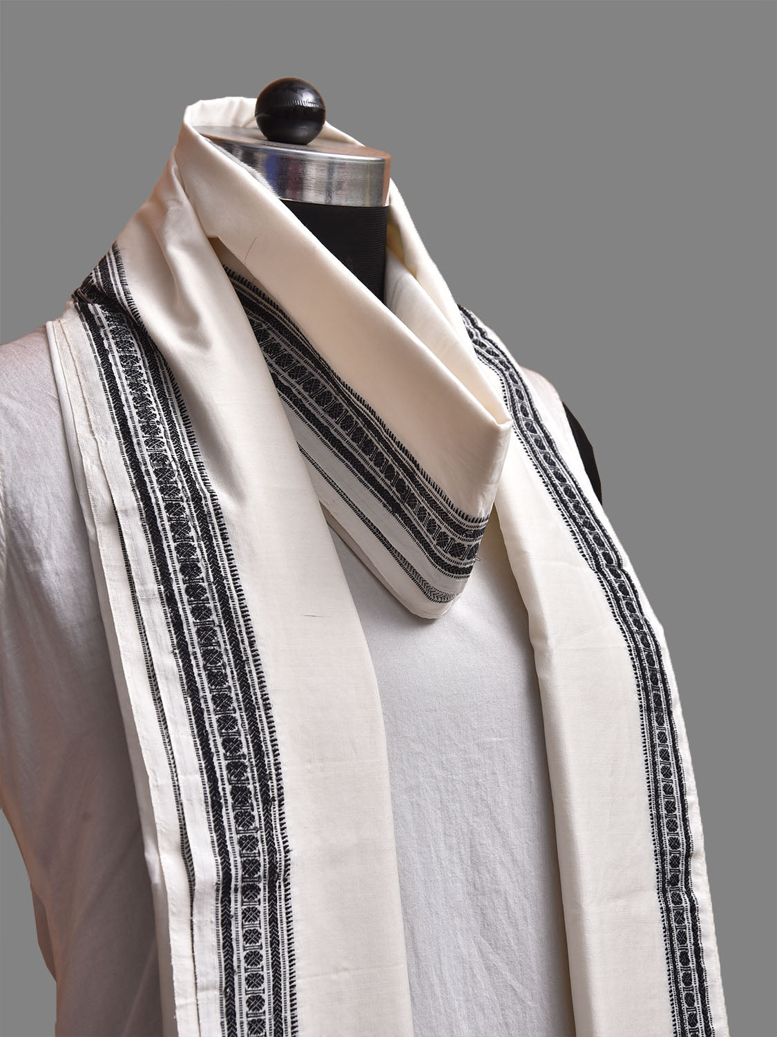 White Cotton 2/140 x 2/140 Handloom Dupatta with Doby Border Design ds3973