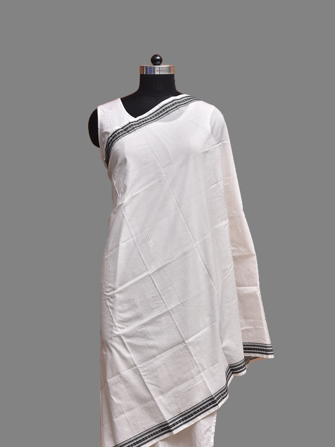 White Cotton 2/140 x 2/140 Handloom Dupatta with Doby Border Design. For fabric care we advise gentle handwash separately only.