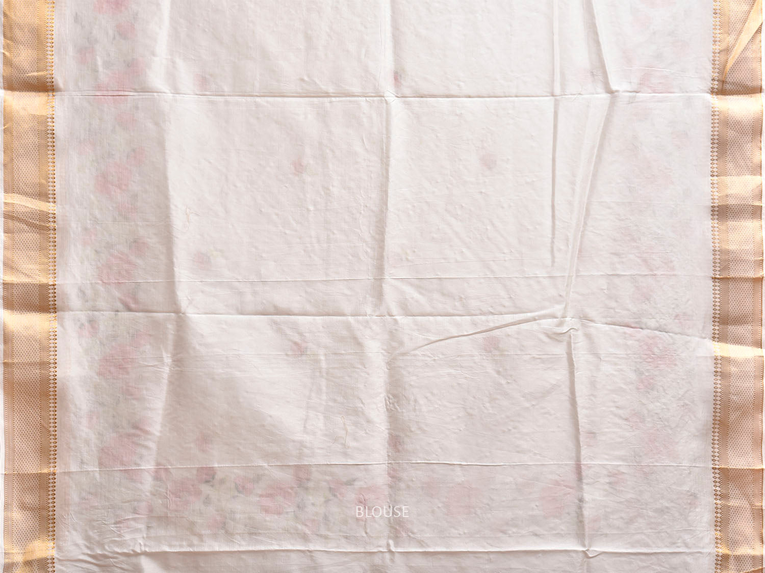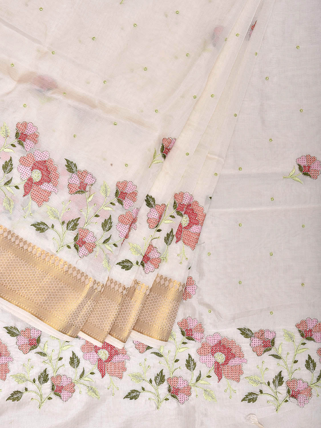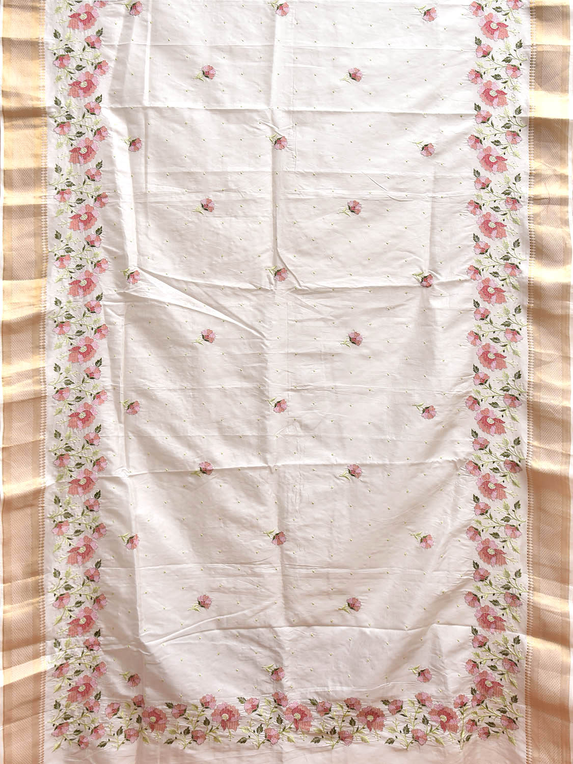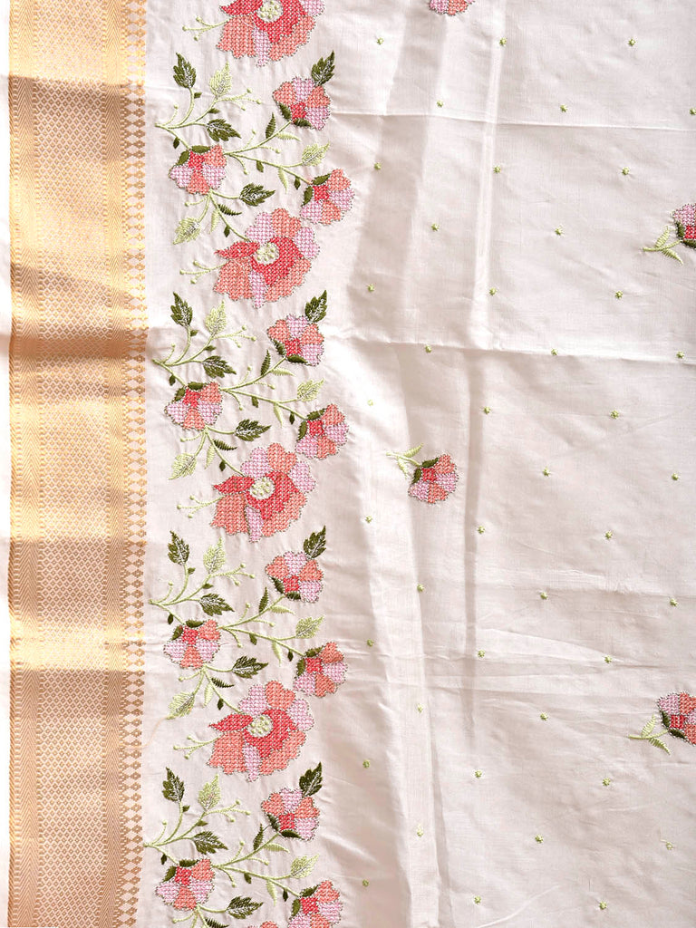 White Embroiday Cotton Viscose Saree with Petit Floral Design o0740