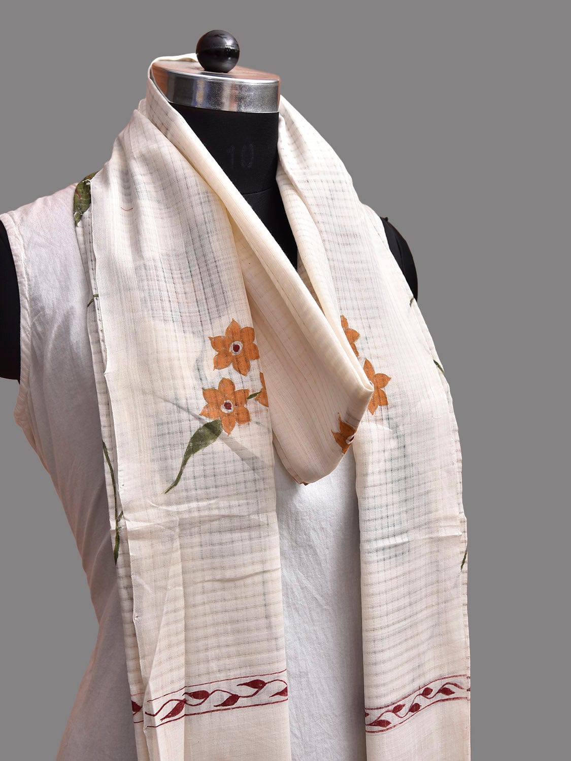 White Hand Painted Kota Cotton Dupatta with Floral Design. We Advise Gentle Handwash for Fabric Care.