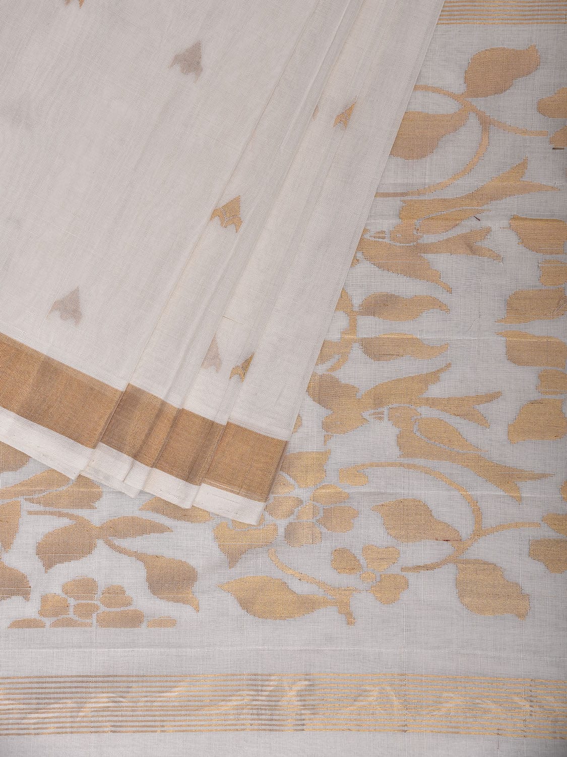 White Uppada Cotton Handloom Saree with Floral Pallu Design. Uppada sarees are known for light weight sarees with jamdani weaving technique. With so many traditional designs it is considered for the very special occasion wear. We advice dry clean for fabric care.
