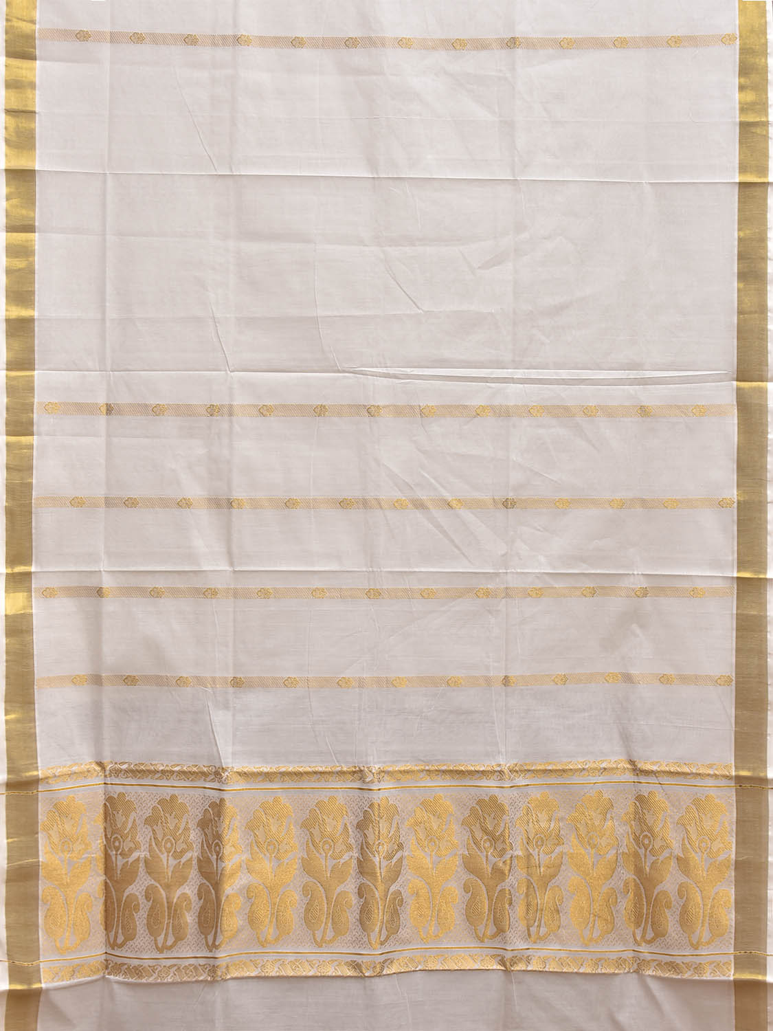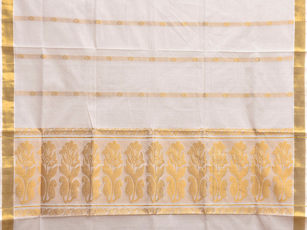 White Venkatagiri Cotton Plain Saree with Floral Pallu Design No Blouse. Venkatagiri sarees are known for very fine cotton hand woven cotton saree. They are light weight and are traditional saree made in Andhra Pradesh. For fabric care we advice gentle handwash separately. This saree has no blouse.