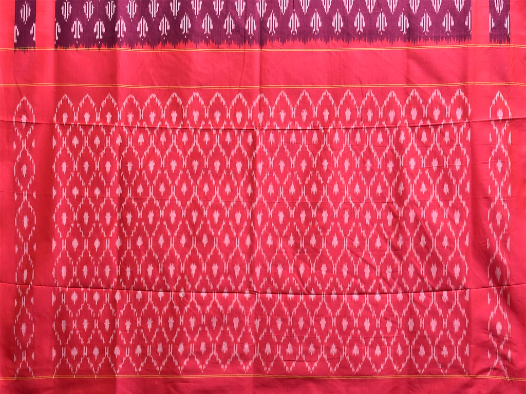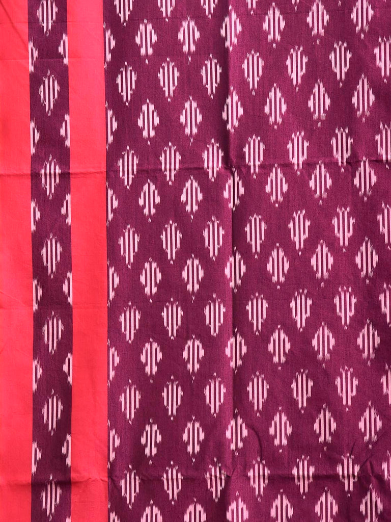 Wine and Red Pochampally Ikat Cotton Handloom Saree with All Over Buta Design No Blouse. This Handloom Saree from Andhra Pradesh has been woven using the resist-dyeing, which produces the unique patterns adorning the fabric. We advise gentle handwash separately for fabric care. This saree has no blouse.