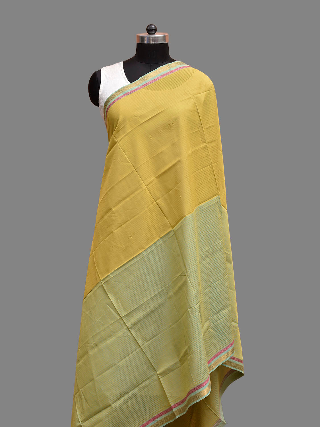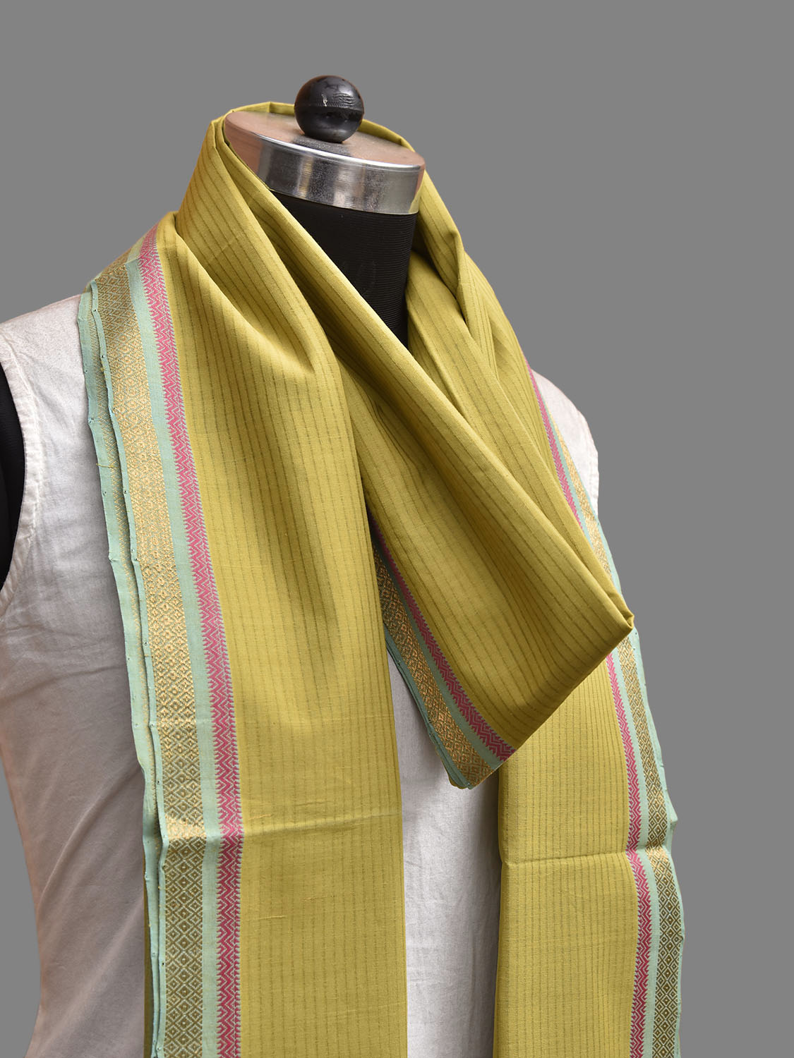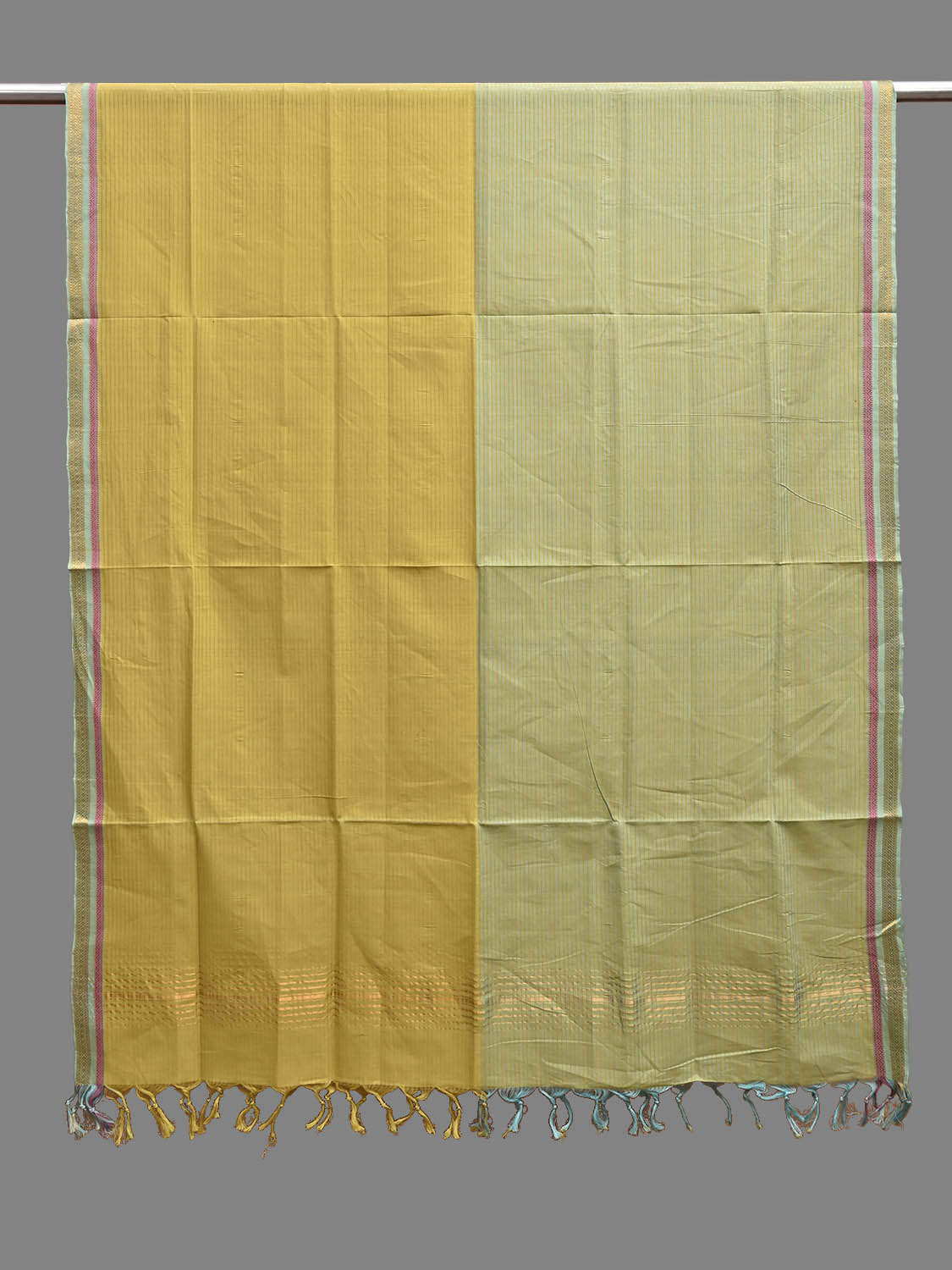 Yellow and Light Green Mangalrigi Cotton Dupatta with Half-Half Design ds3836