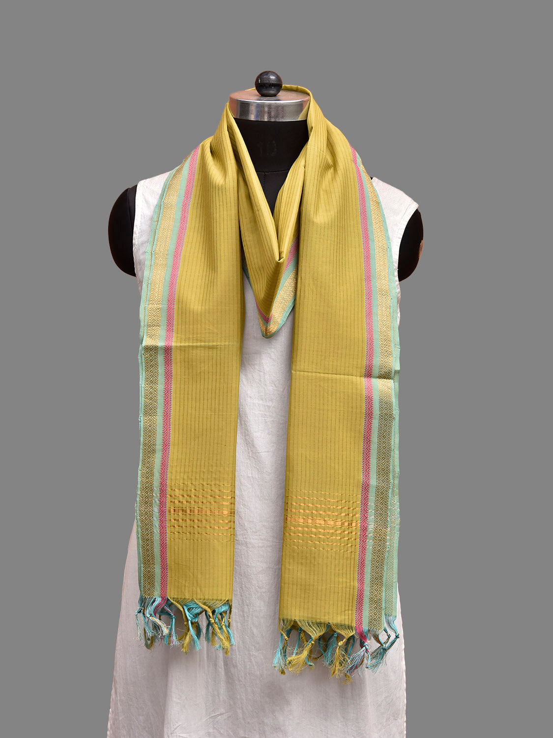 Yellow and Light Green Mangalrigi Cotton Dupatta with Half-Half Design