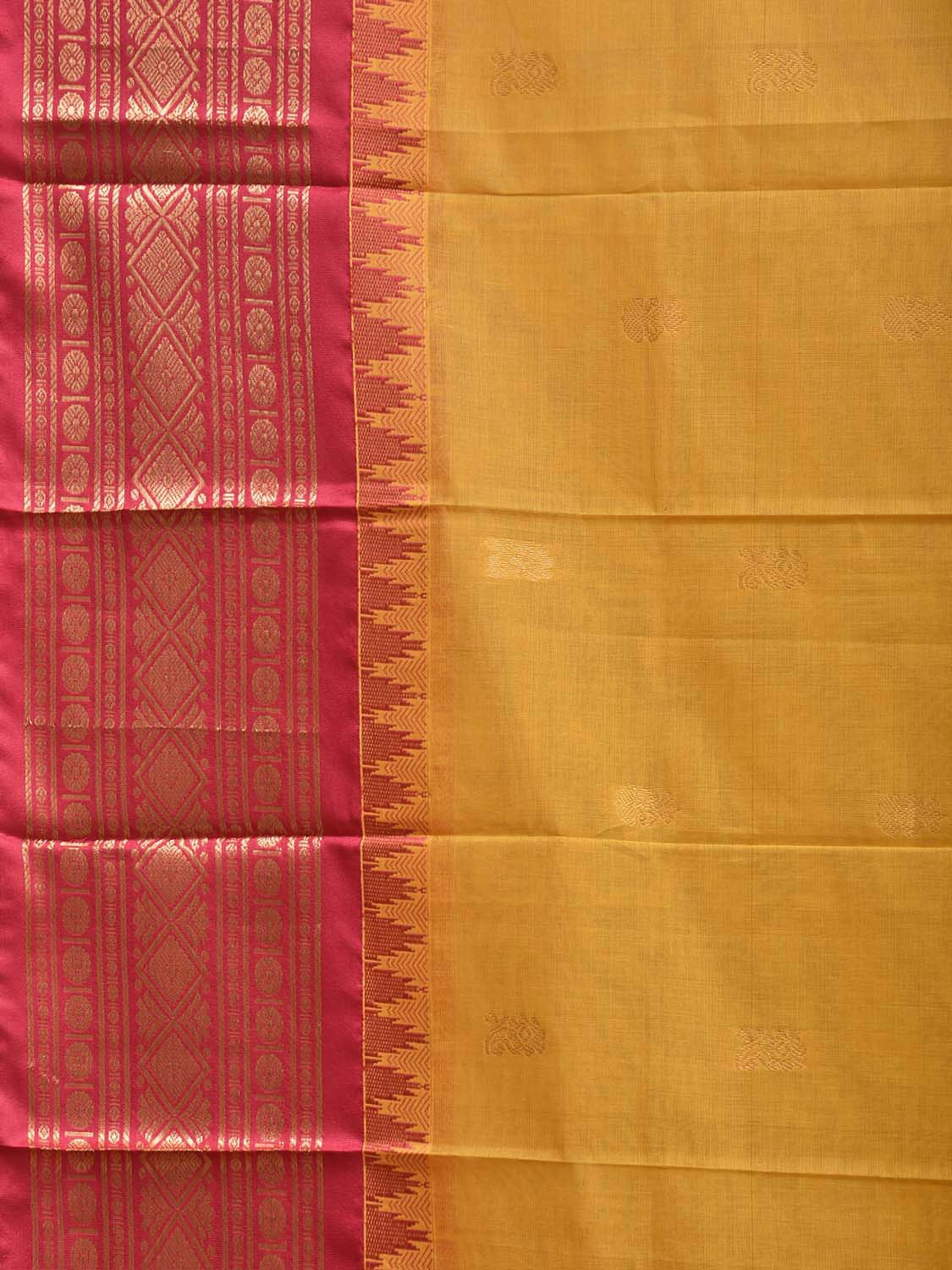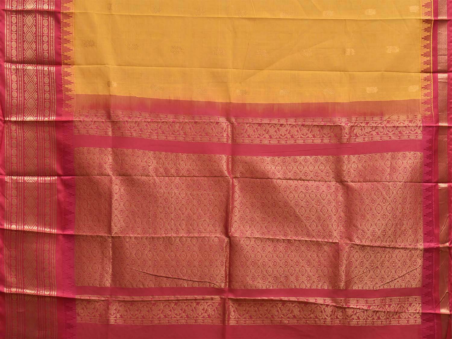 Yellow and Pink Gadwal Cotton Viscose Saree with Body Buta and Pallu Design No Blouse g0657