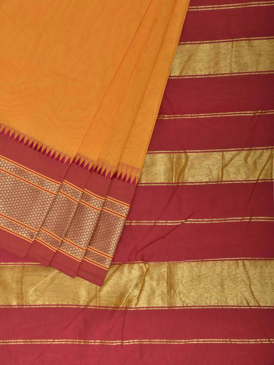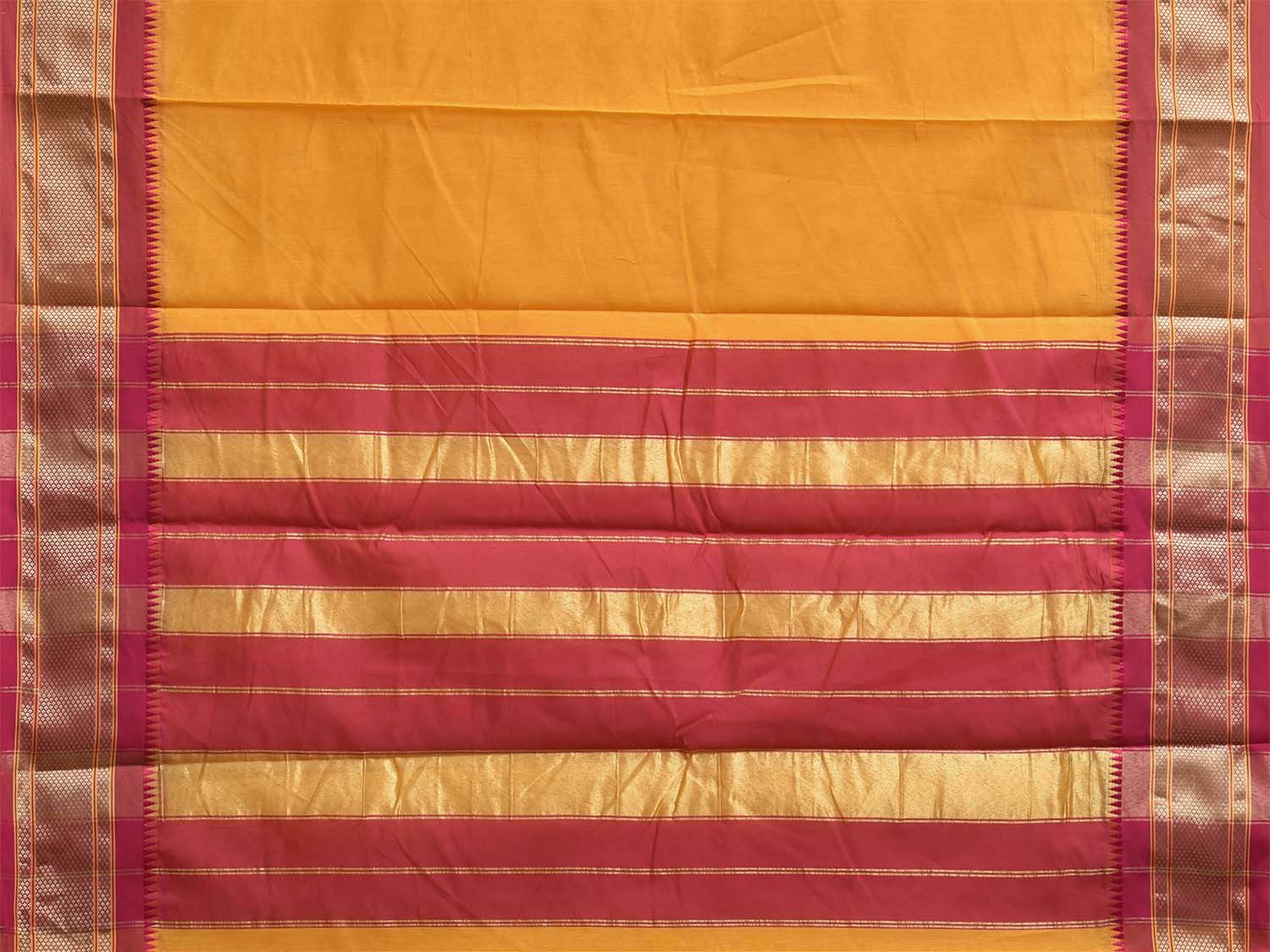 Yellow and Red Bamboo Cotton Plain Saree with Contrast Pallu Design No Blouse. This is a blend of bamboo and cotton fibers, they have characteristics of both bamboo and cotton combined into one fabric. We Advise Gentle Handwash for Fabric Care. This saree has no blouse.