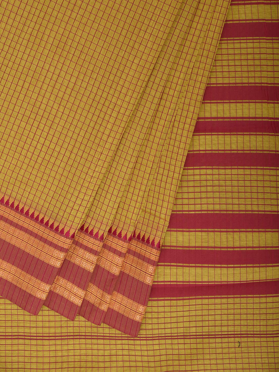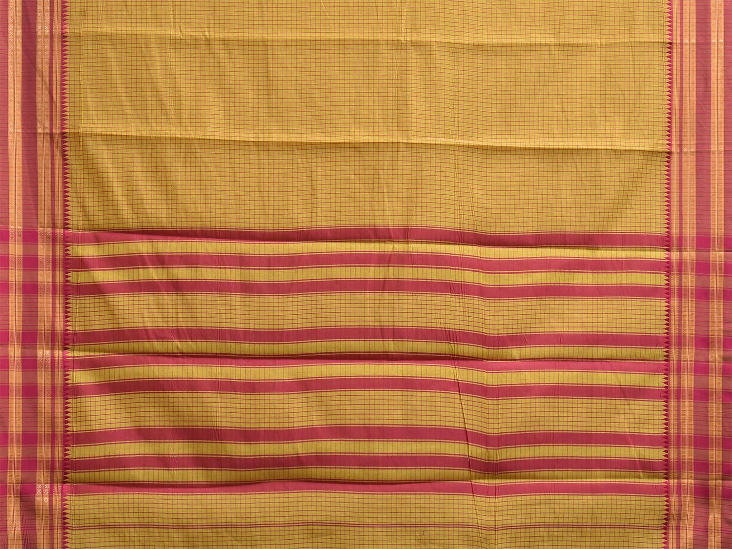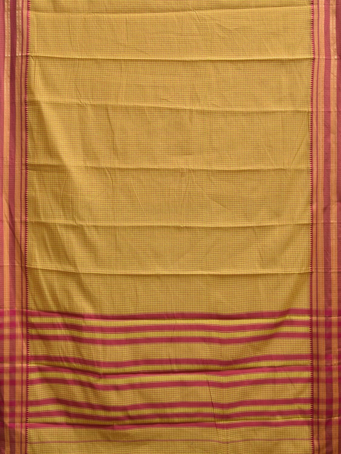 Yellow and Red Bamboo Cotton Saree with Checks Design No Blouse. This is a blend of bamboo and cotton fibers, they have characteristics of both bamboo and cotton combined into one fabric. We Advise Gentle Handwash for Fabric Care. This saree has no blouse.