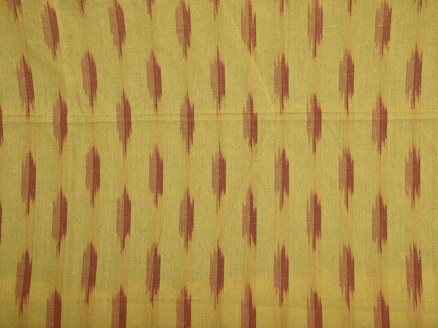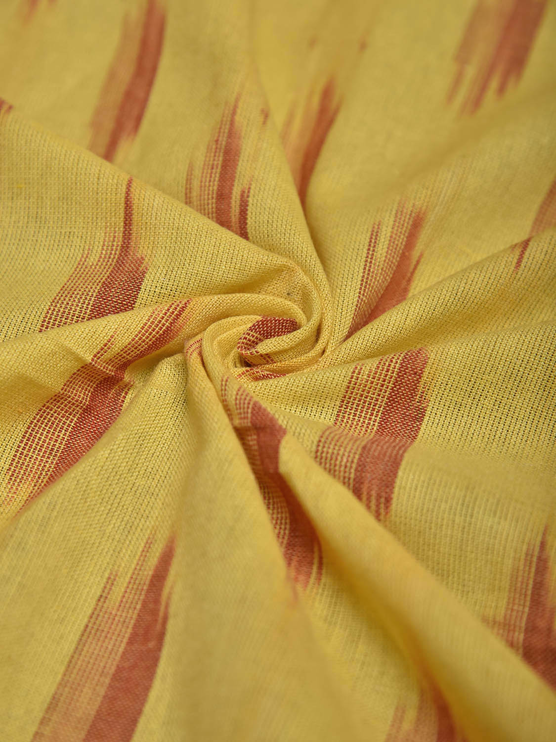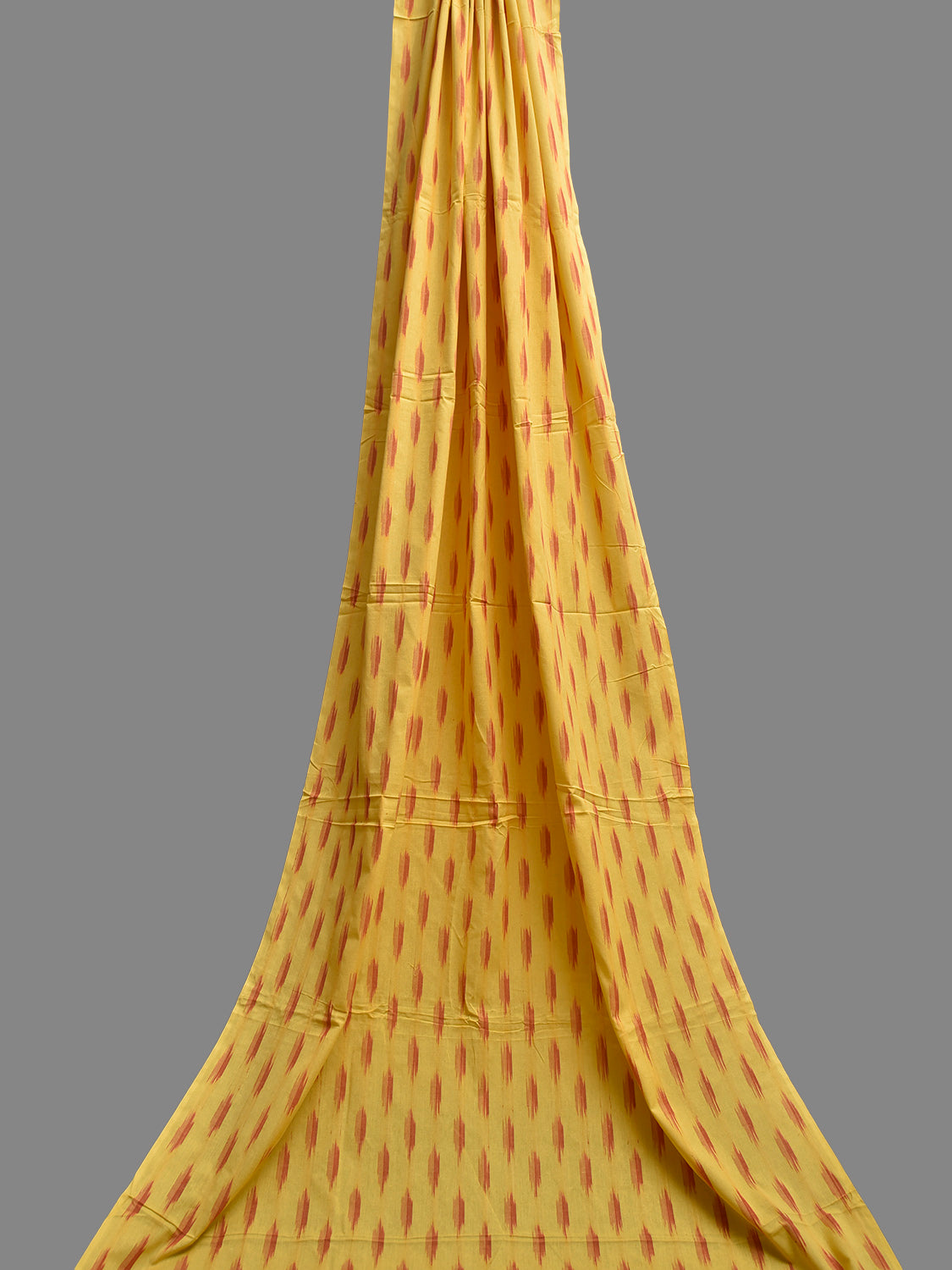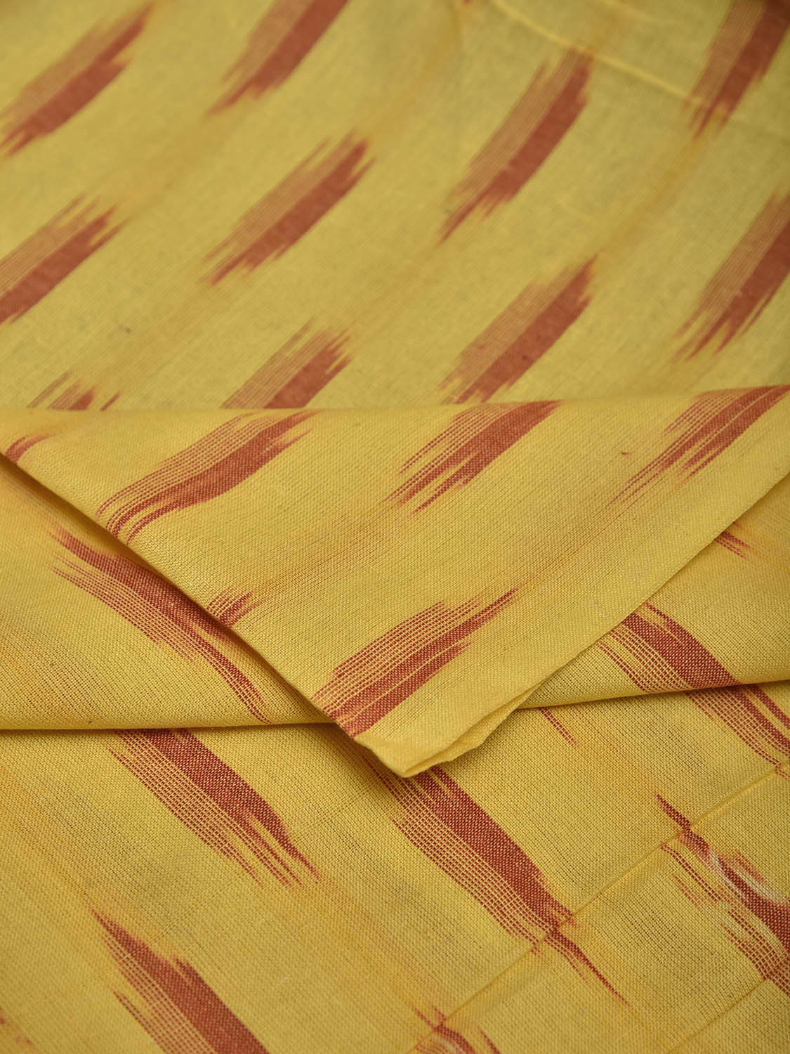 Yellow and Red Pochampally Ikat Cotton 2.5mts Fabric with Buta Design. This Handloom Cotton Fabric from Andhra Pradesh has been woven using the resist-dyeing, which produces the unique patterns adorning the fabric. Fabric is 44 inches in width. The price mentioned is for Quantity 1 = 2.5 meters. For fabric care we advise gentle handwash separately