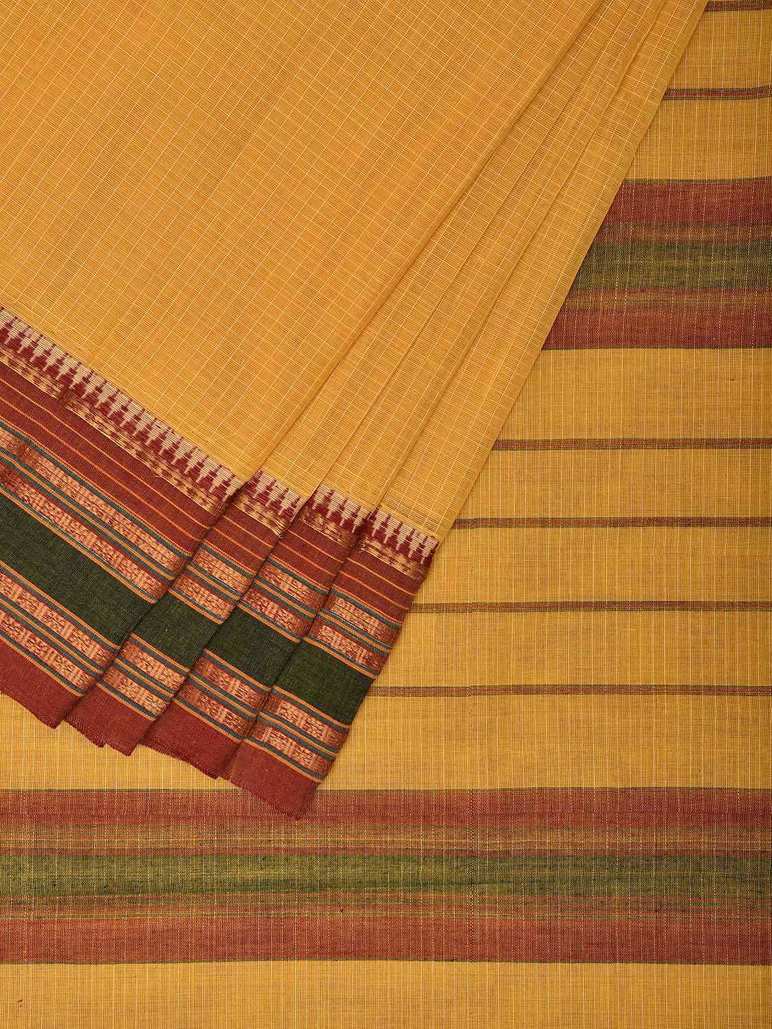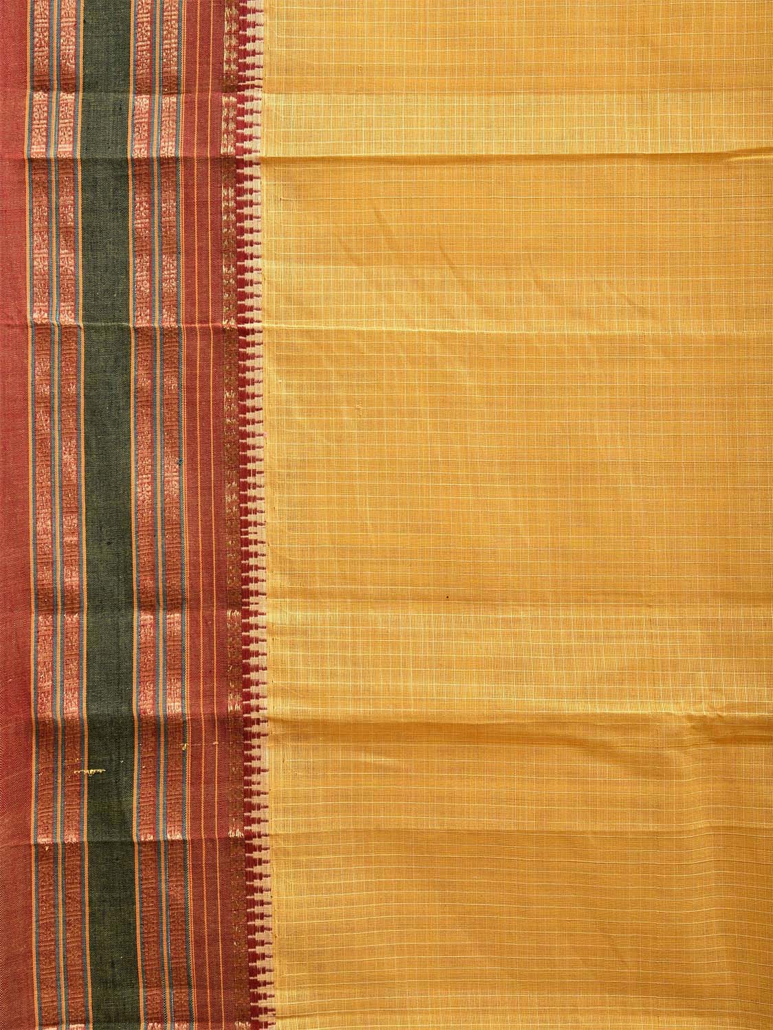Yellow Narayanpet Cotton Handloom Saree with Checks Design No Blouse. These are Traditional Narayanpet Design Sarees. For fabric care we advise dry clean. This Saree has no Blouse.